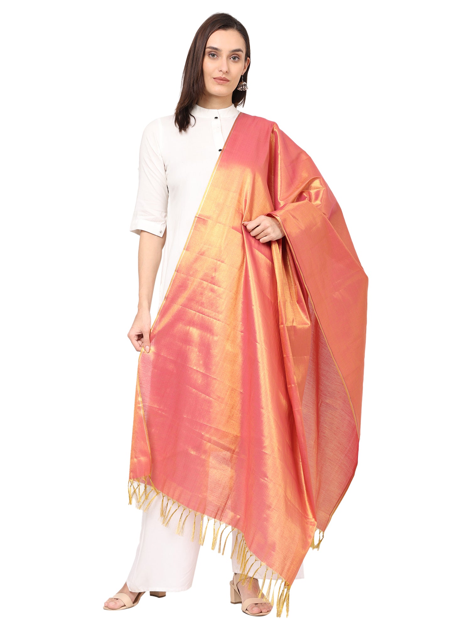 Women's Soild Silk Plain Dupatta - Gold/Rani Pink