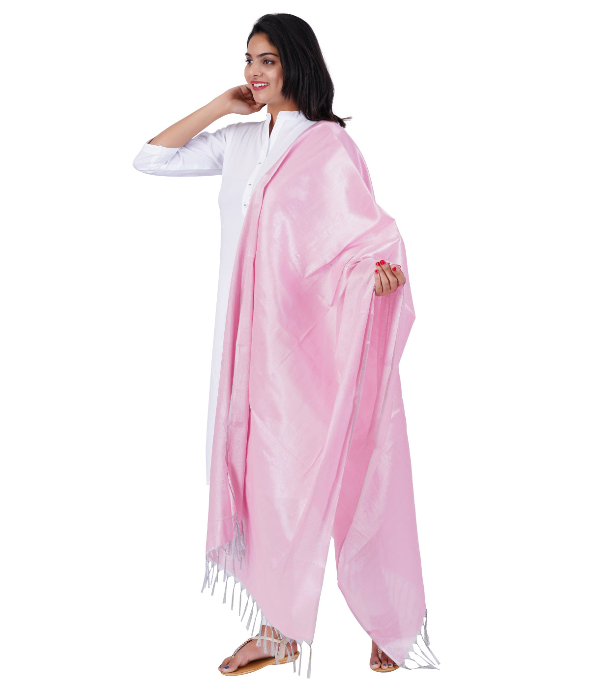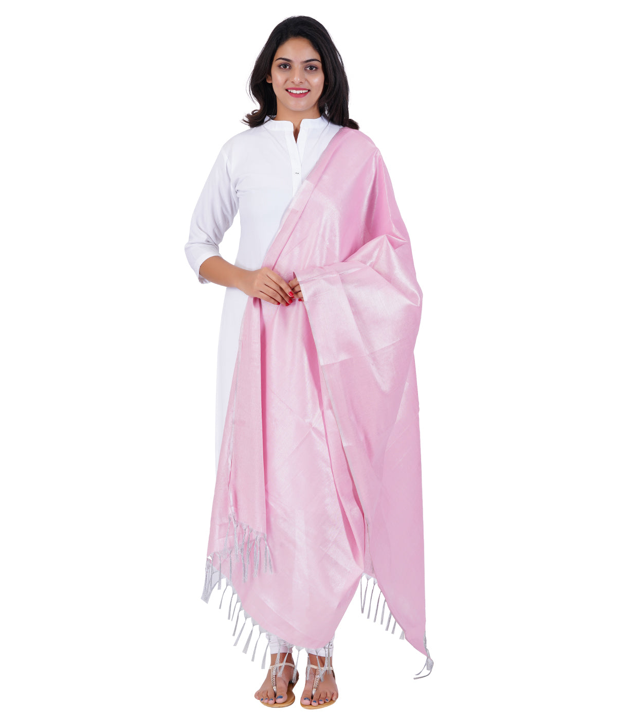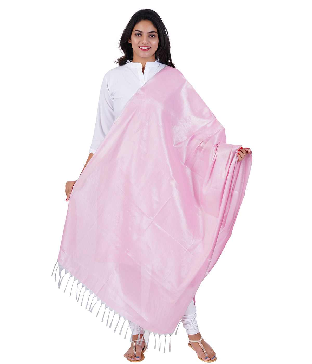 Women's Soild Silk Plain Dupatta - Silver/Light Pink