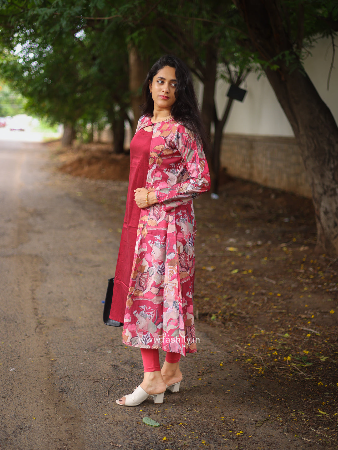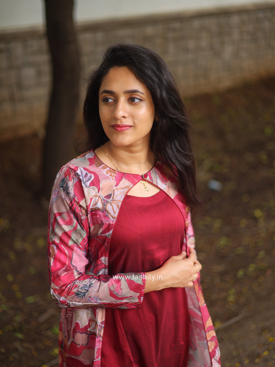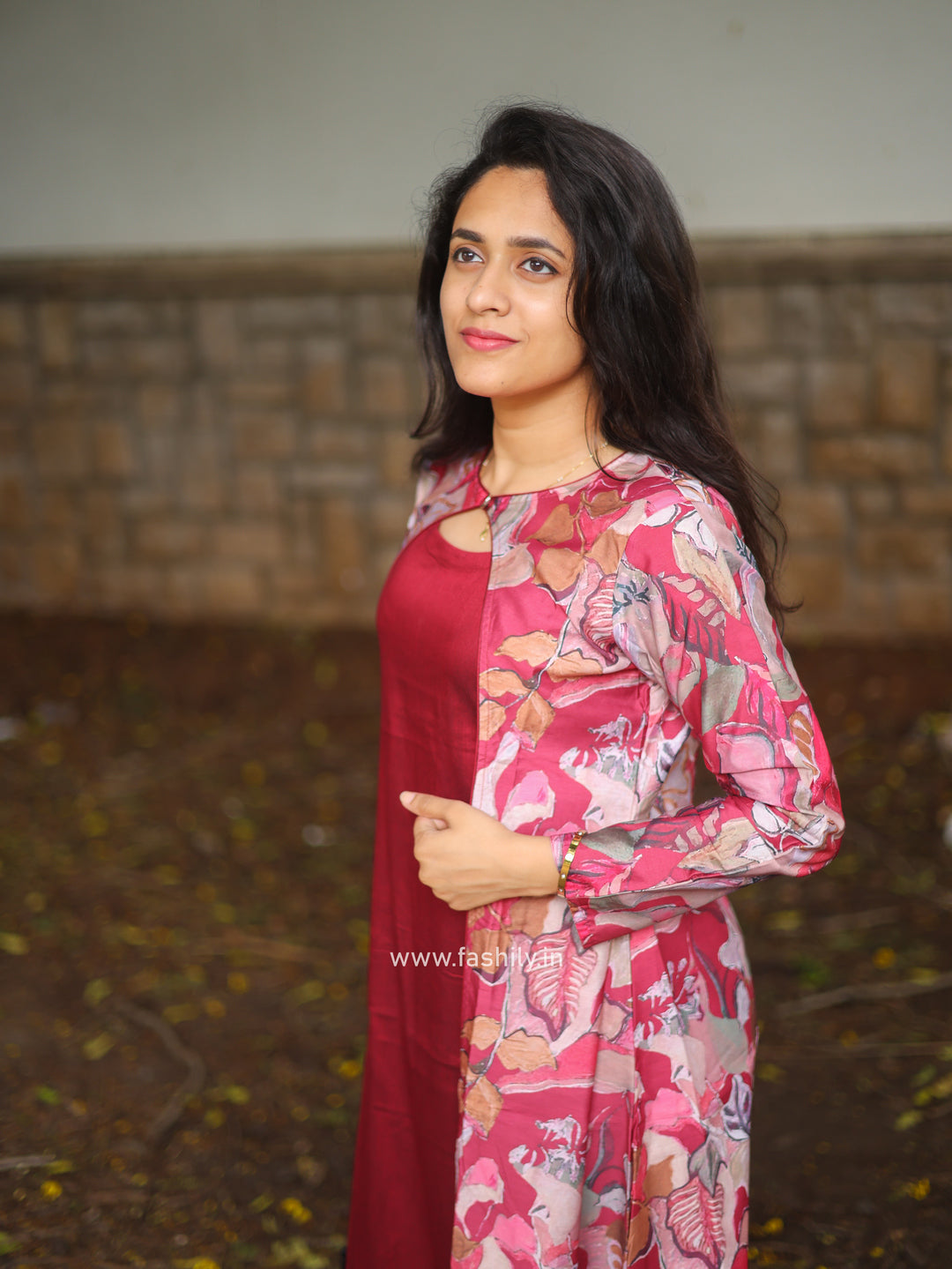Be the fashion icon with our Fashily 2-piece set. Crafted with a maroon slub silk sleeveless kurti and a printed blazer, this outfit offers versatility and chic style. Mix and match or wear together, the choice is yours. Upgrade your wardrobe with this trendy and fashionable set. Both peices are seperatable and can be worn alone or together as per your convenience