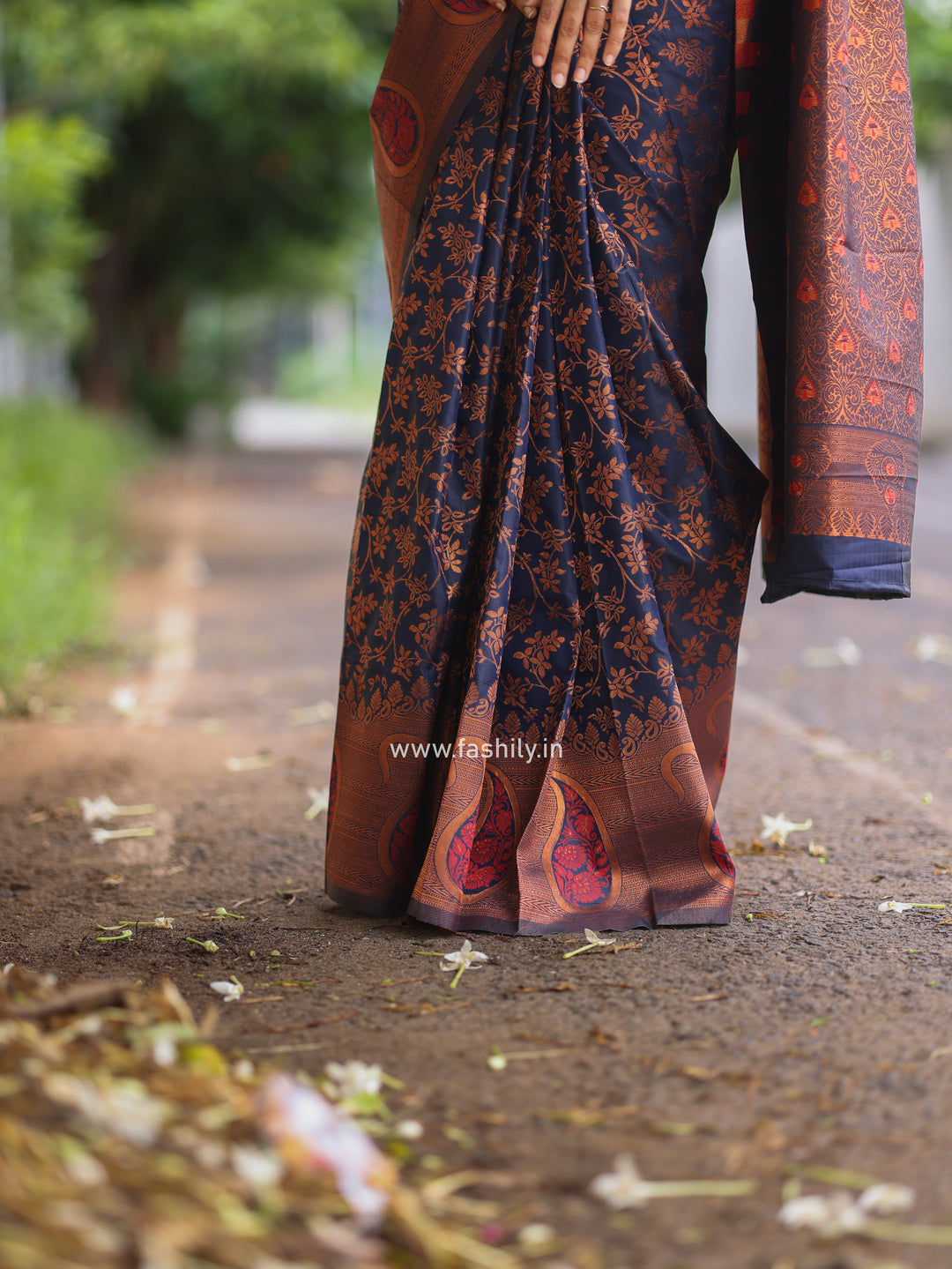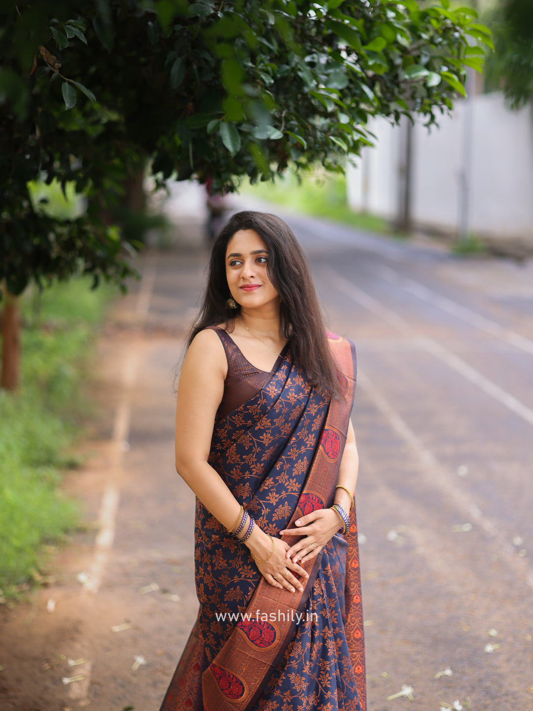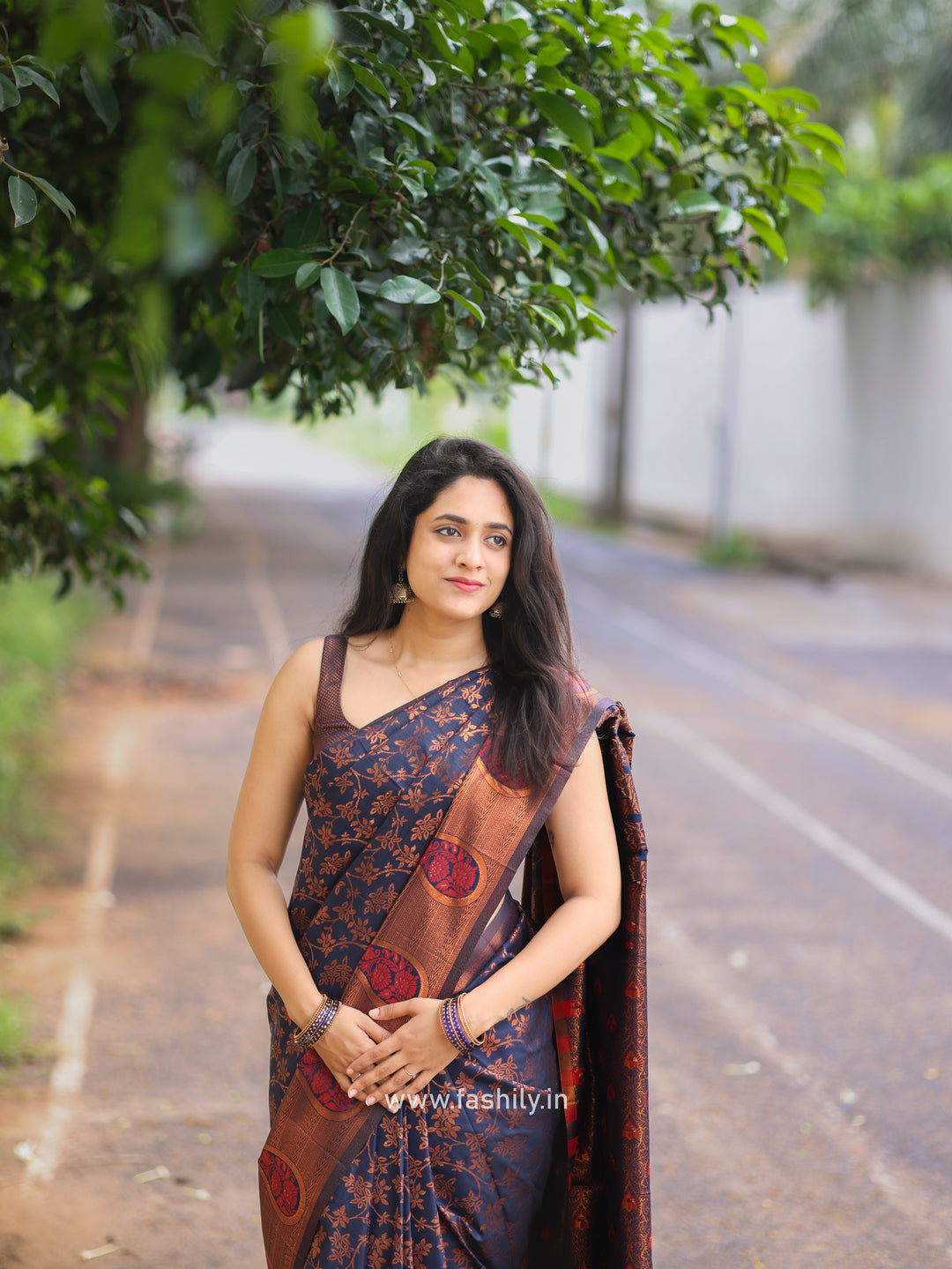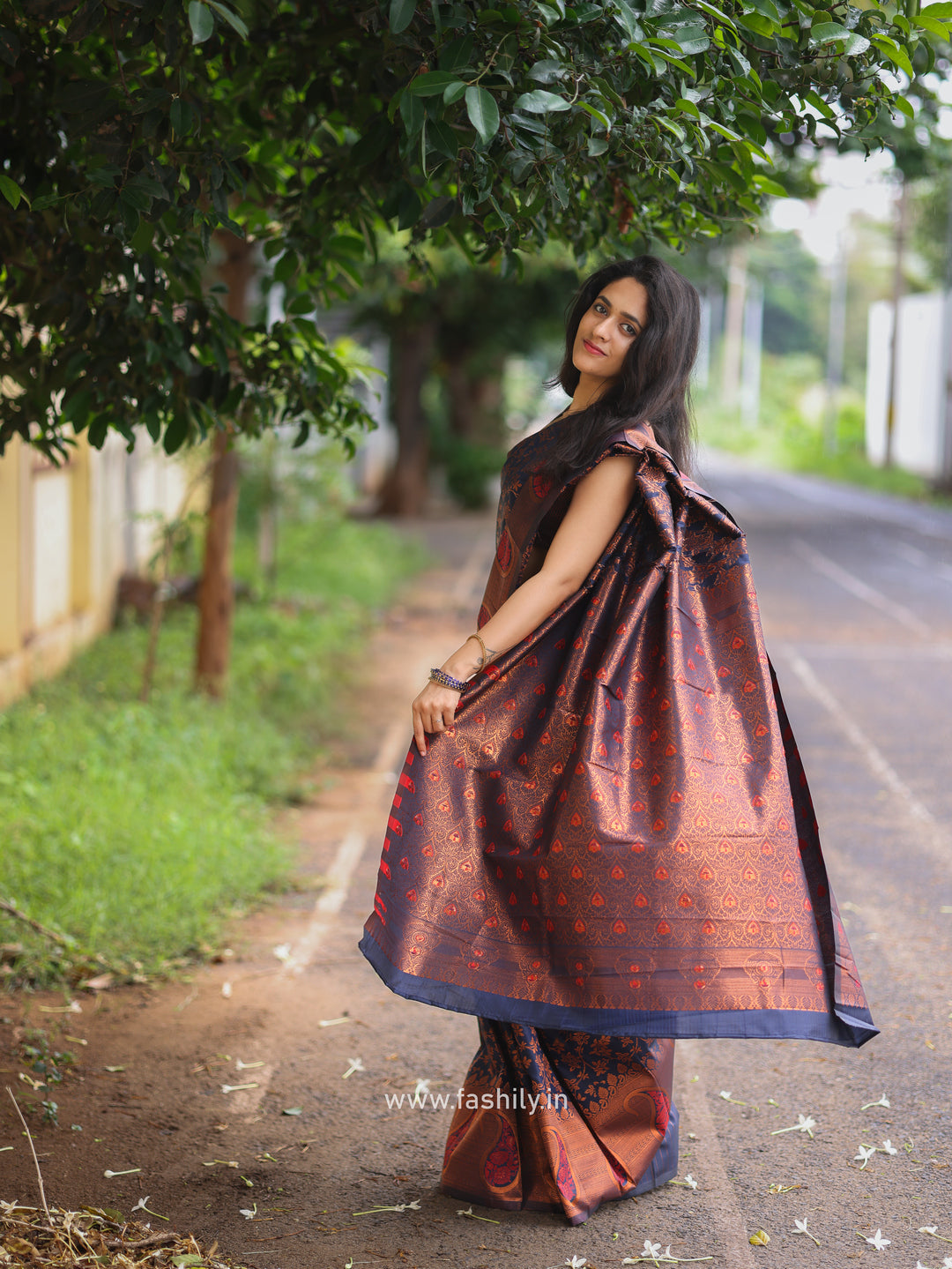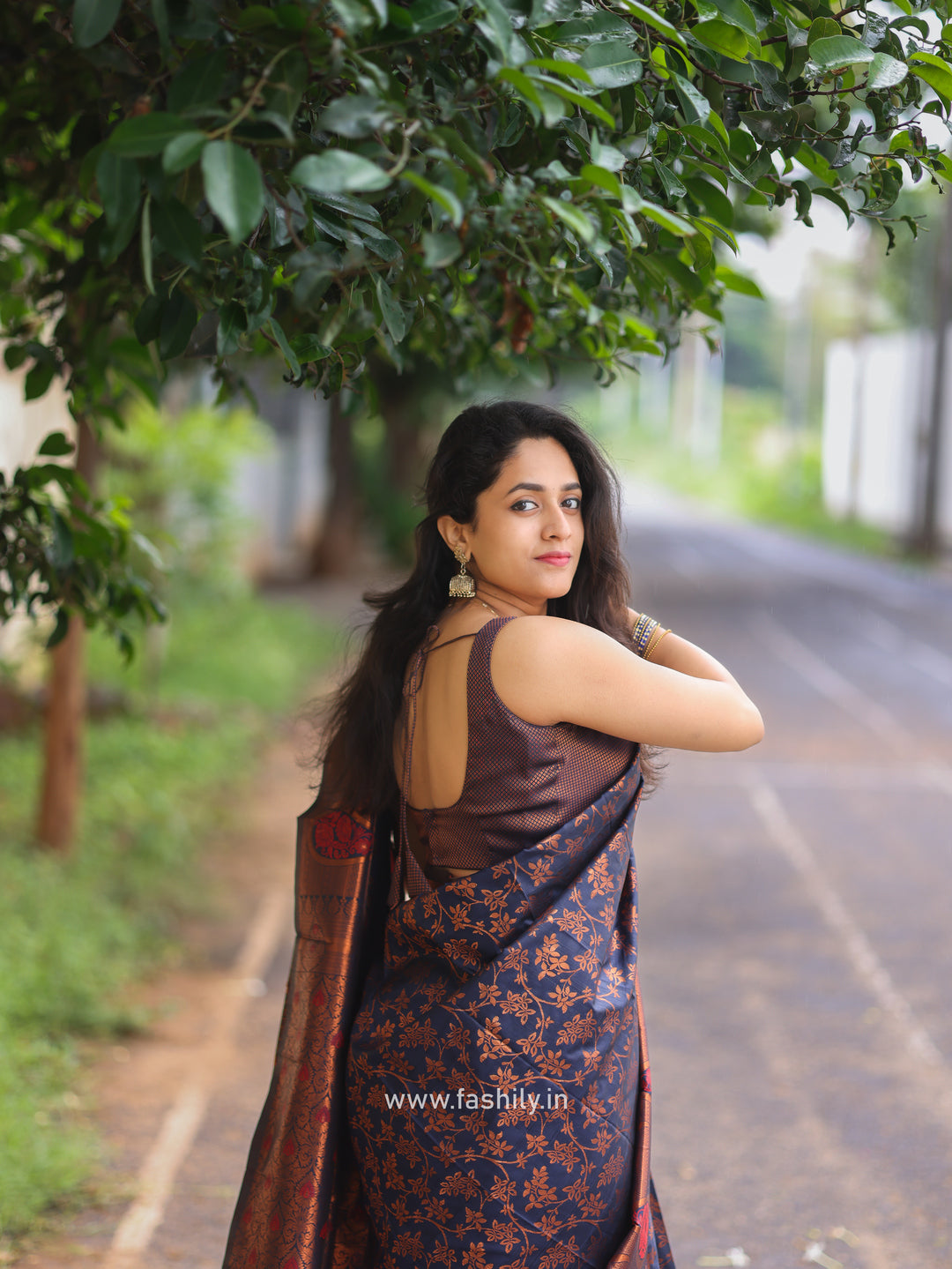 Fashily Elegant Navy Blue Saree with Jari Work and Red Meena Highlights