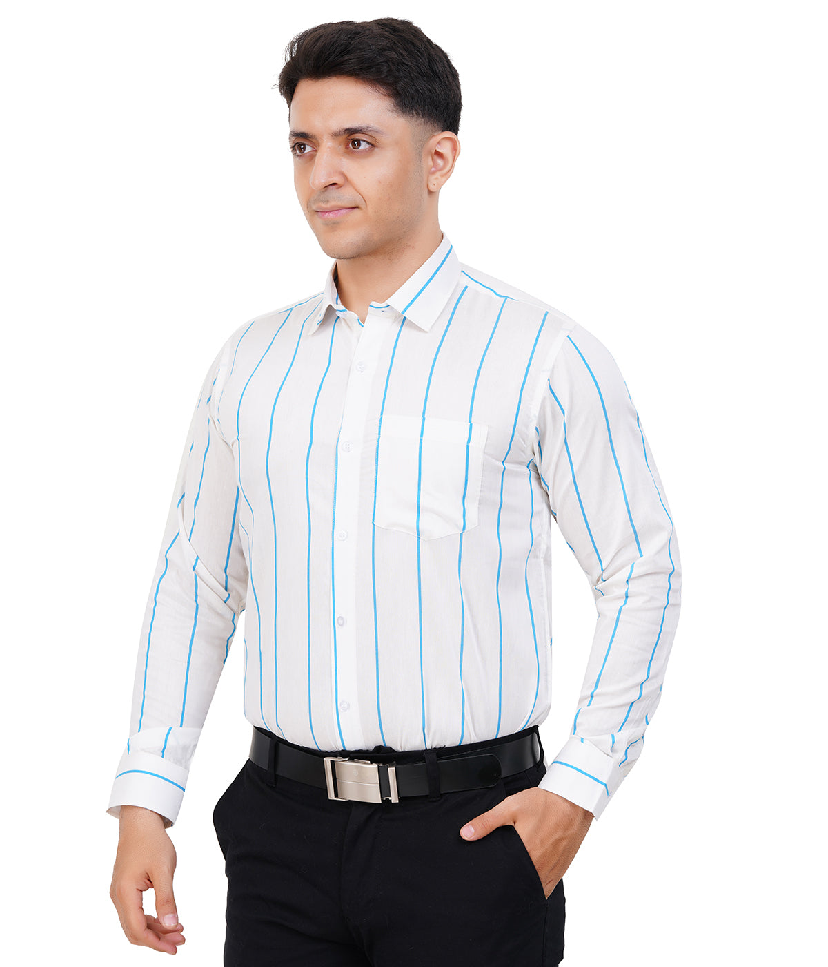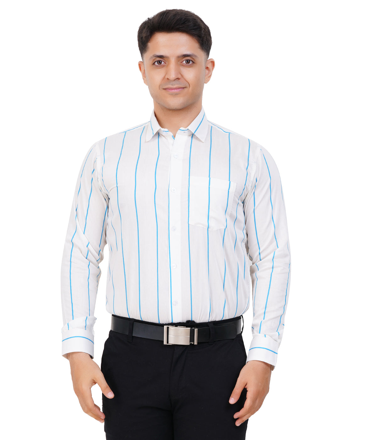 • 🧵Stripe Full Sleeves with Crisp Spread Collar: Designed for formal settings, this shirt features classic styling details that elevate your office look.