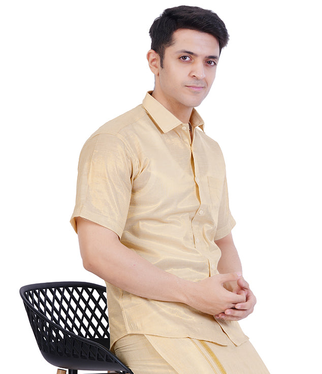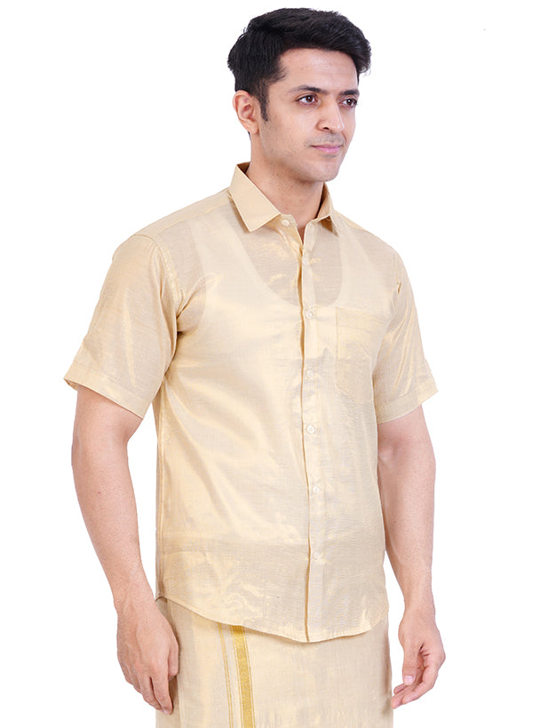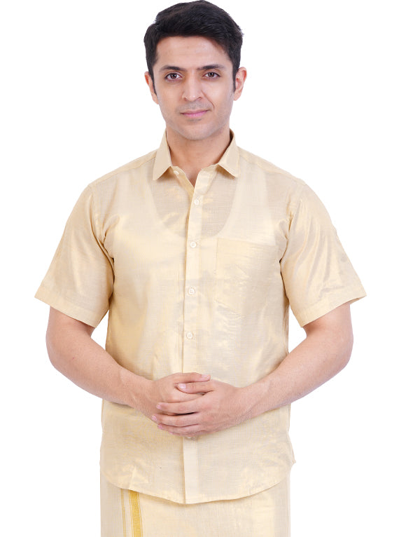 Fashily Men's Soft Tissue Ethnic Regular Fit Shirt - Gold Half Sleeve