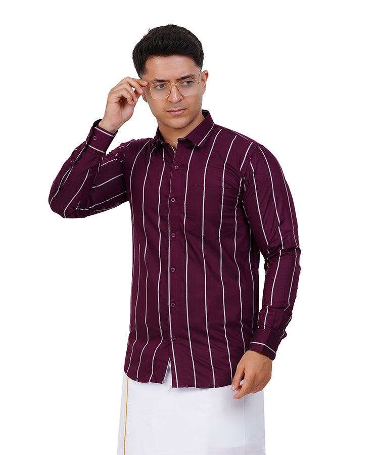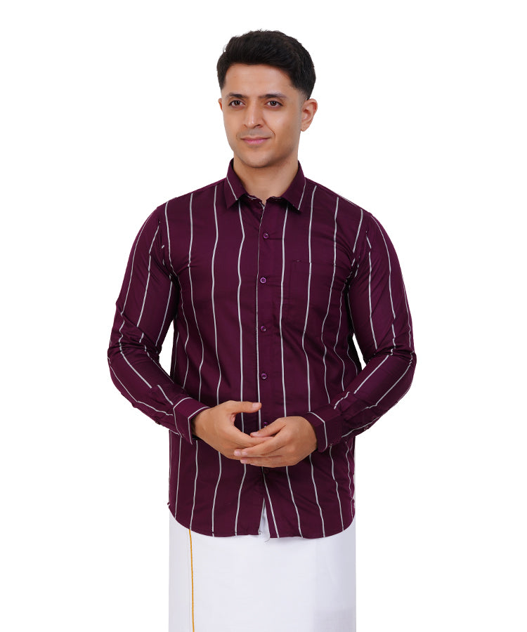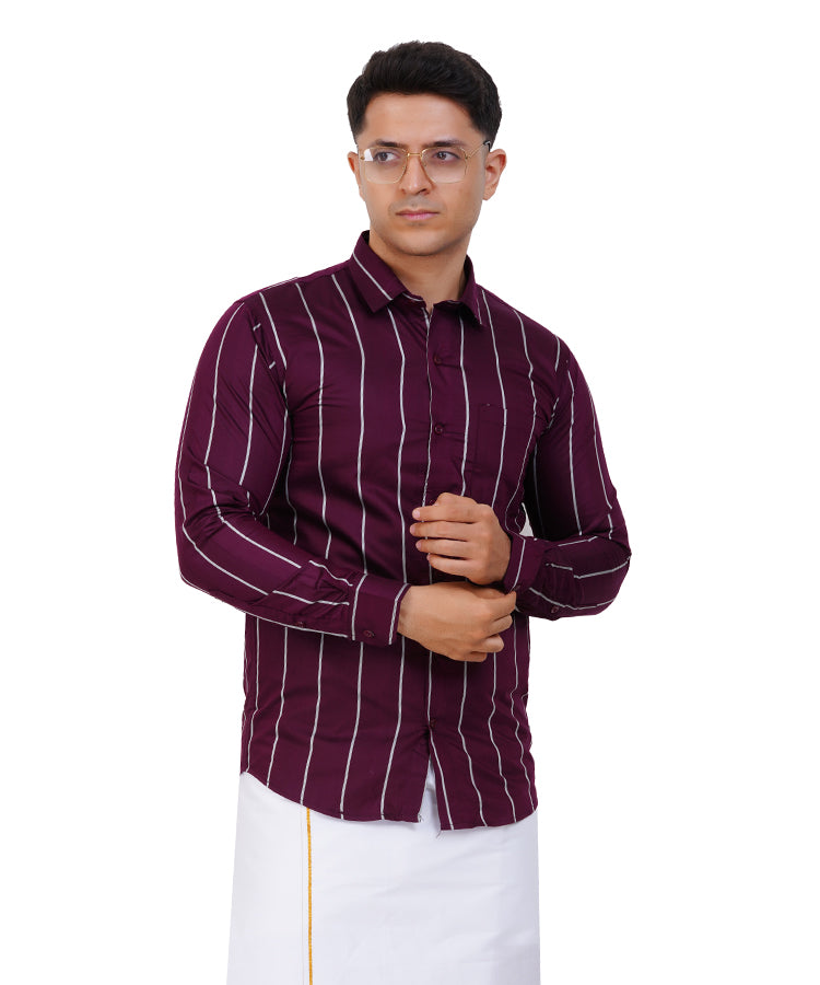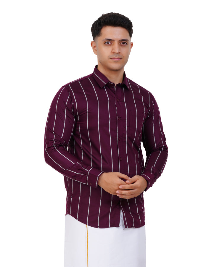 Fashily Men's Traditional Stripe Full Sleeve Shirt for Men Shirt | Ethnic Stripe Full Hand Shirts for Men
