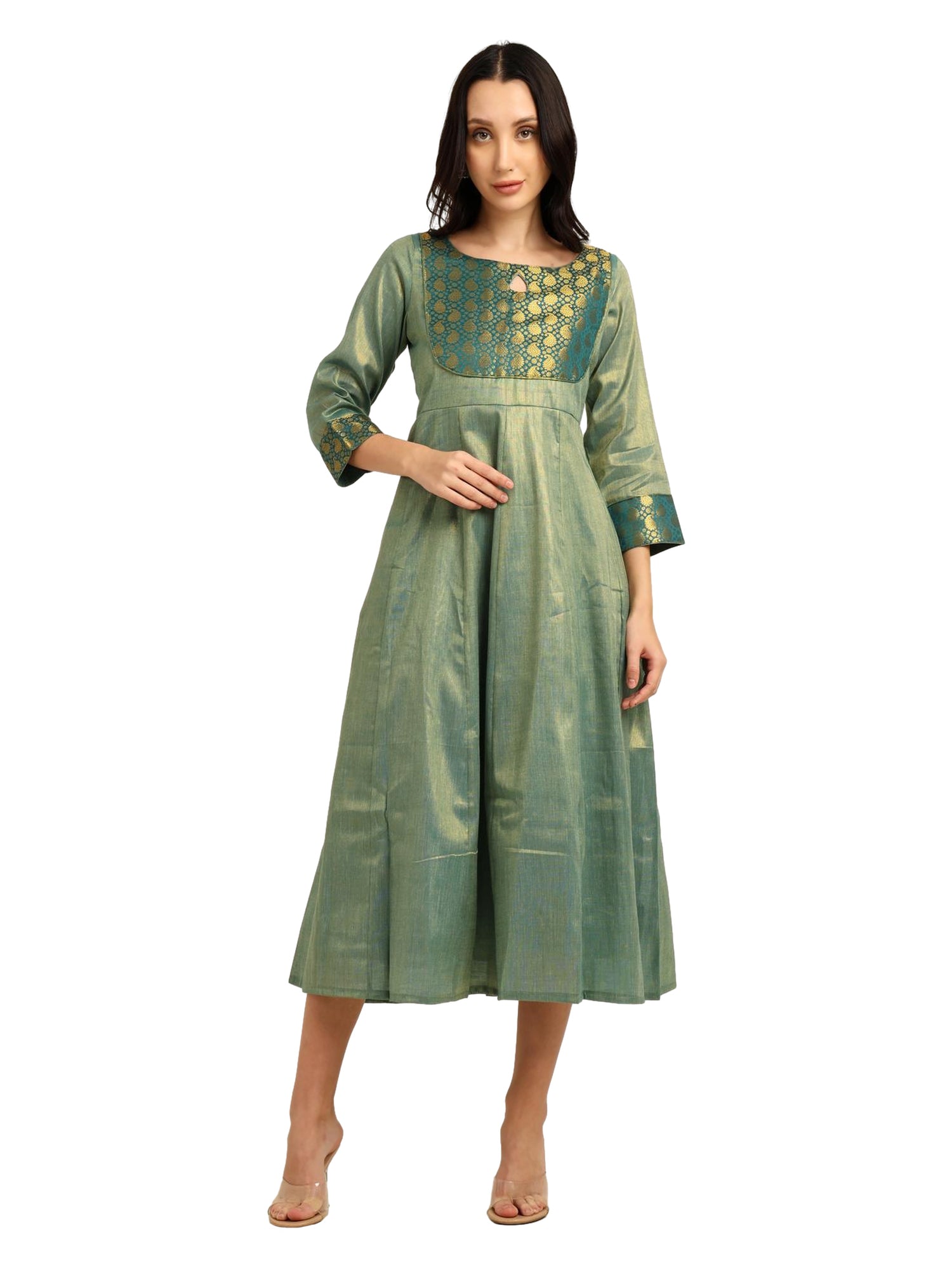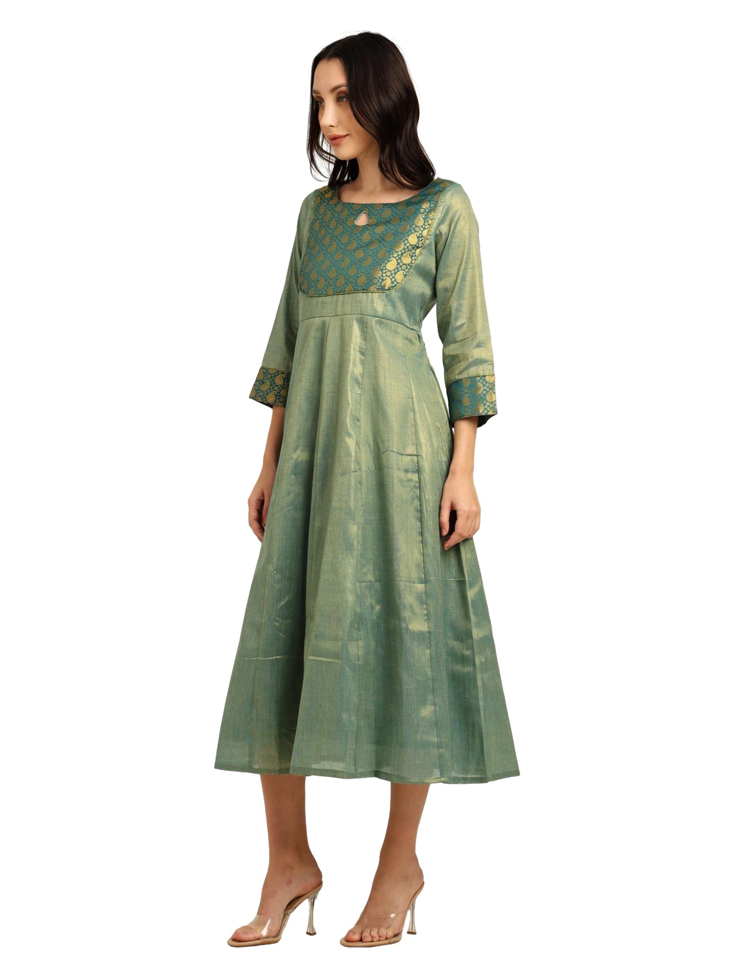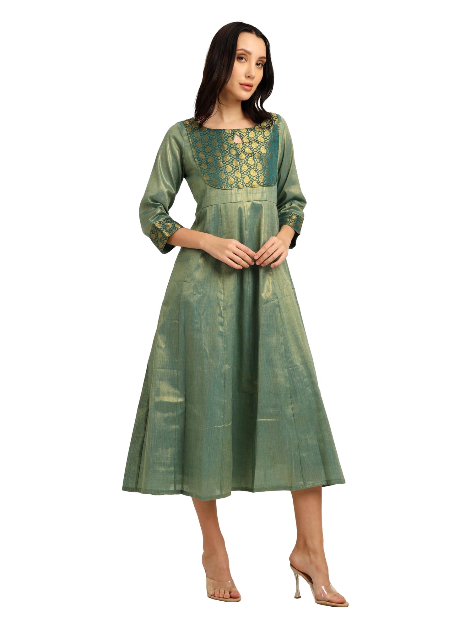 Fashily Women's Jacquard Woven Anarkali Gown | Traditional Indian Dress for Women | Tissue Frock for Women Calf Length