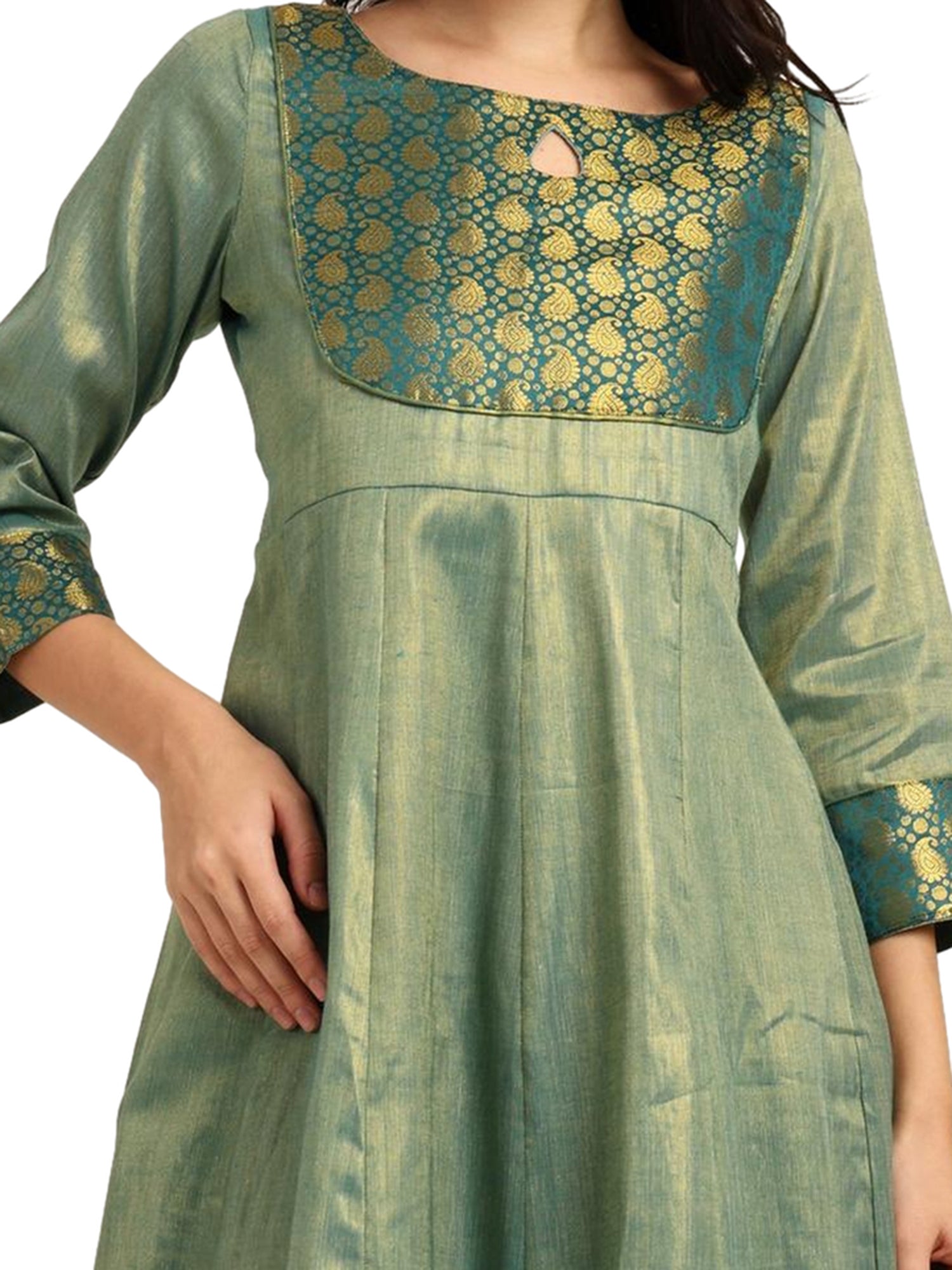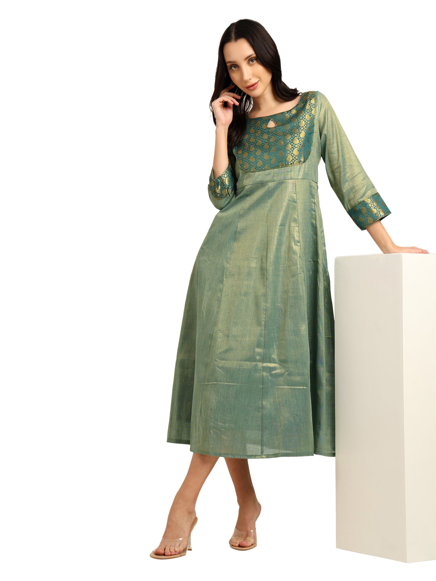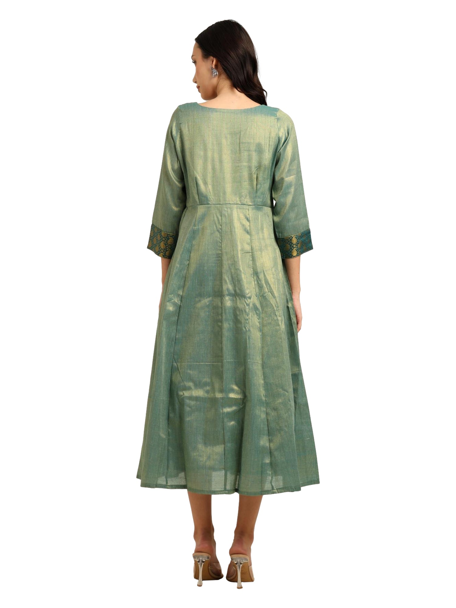 Fashily Women's Jacquard Woven Anarkali Gown | Traditional Indian Dress for Women | Tissue Frock for Women Calf Length