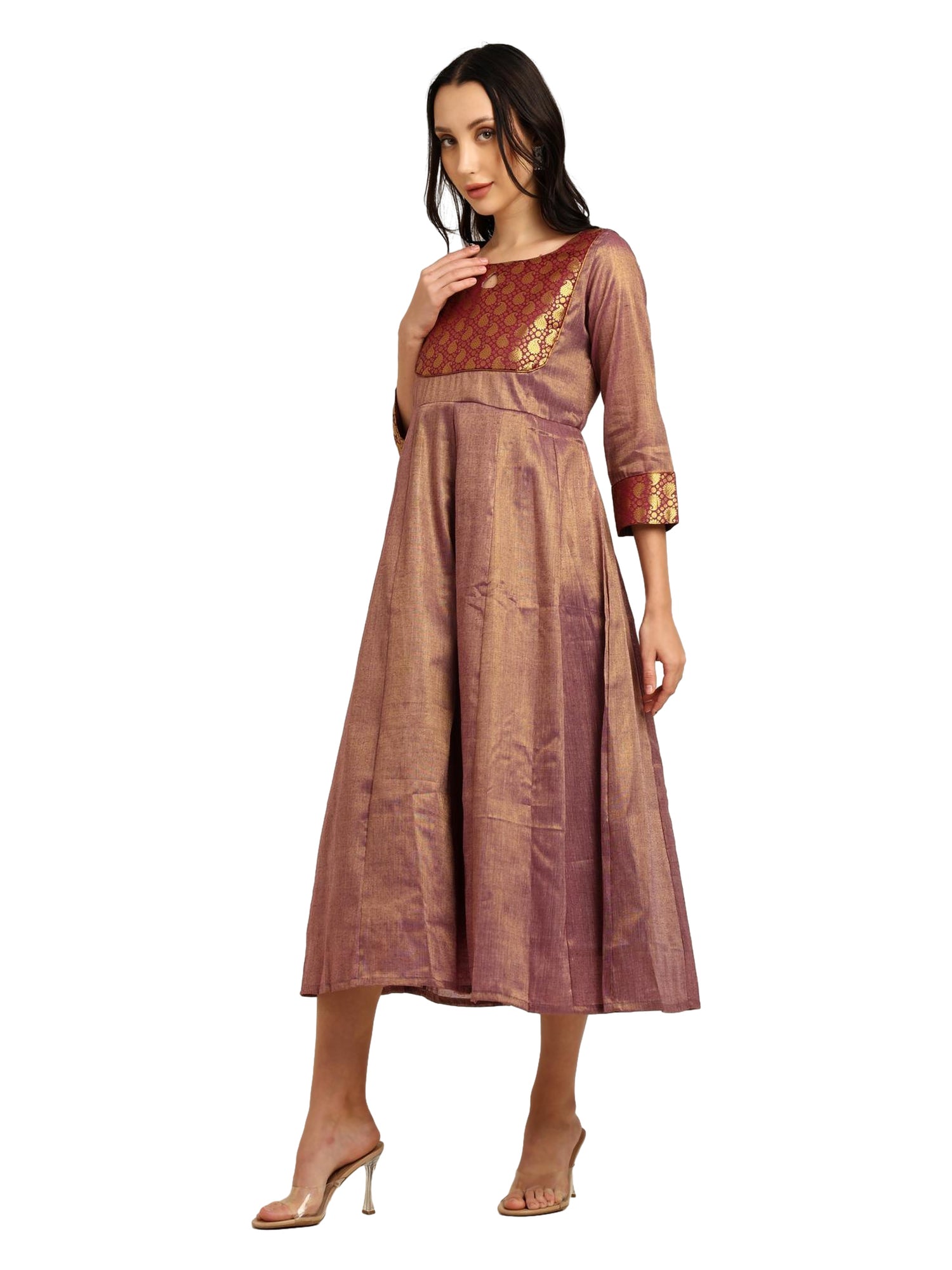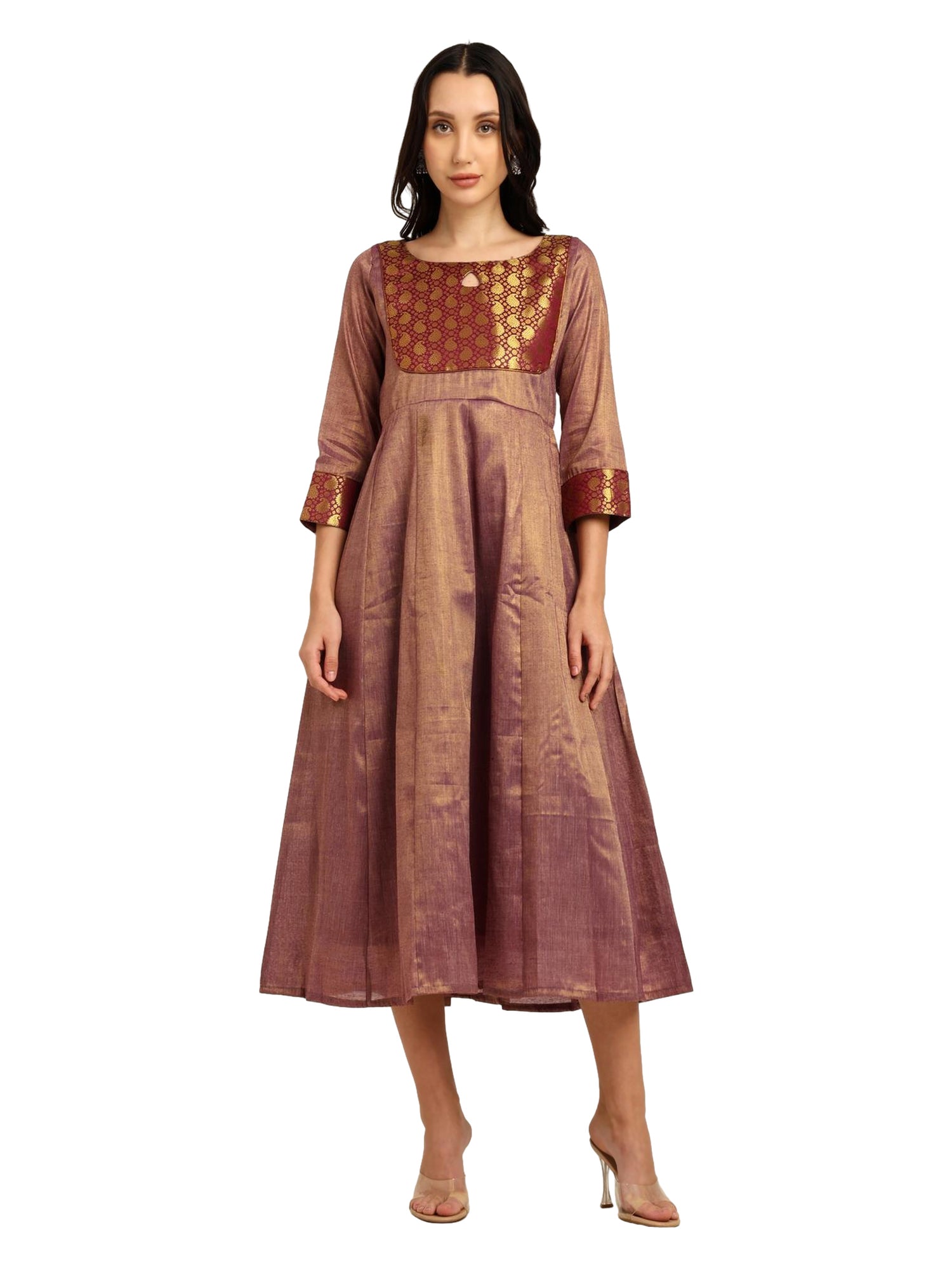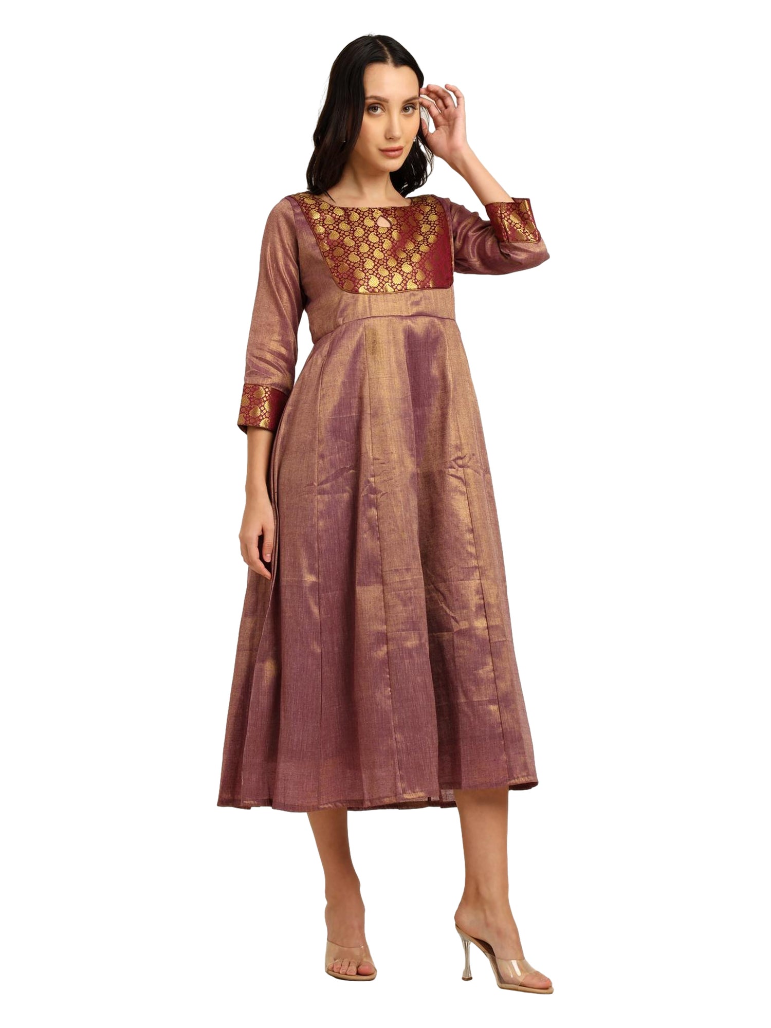 Fashily Women's Jacquard Woven Anarkali Gown | Traditional Indian Dress for Women | Tissue Frock for Women Calf Length