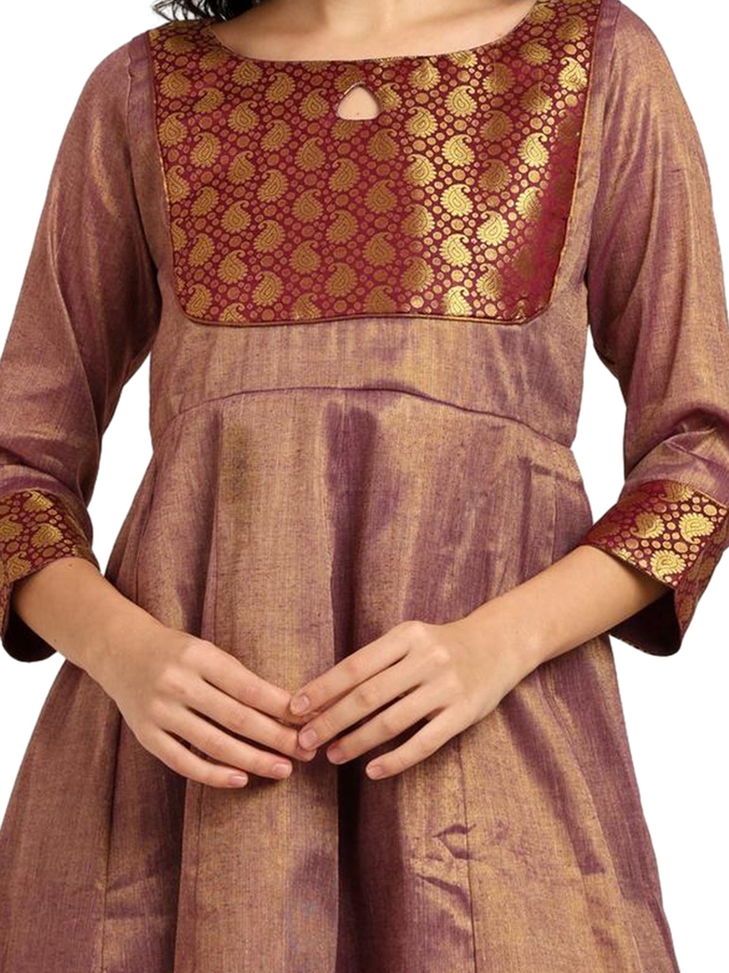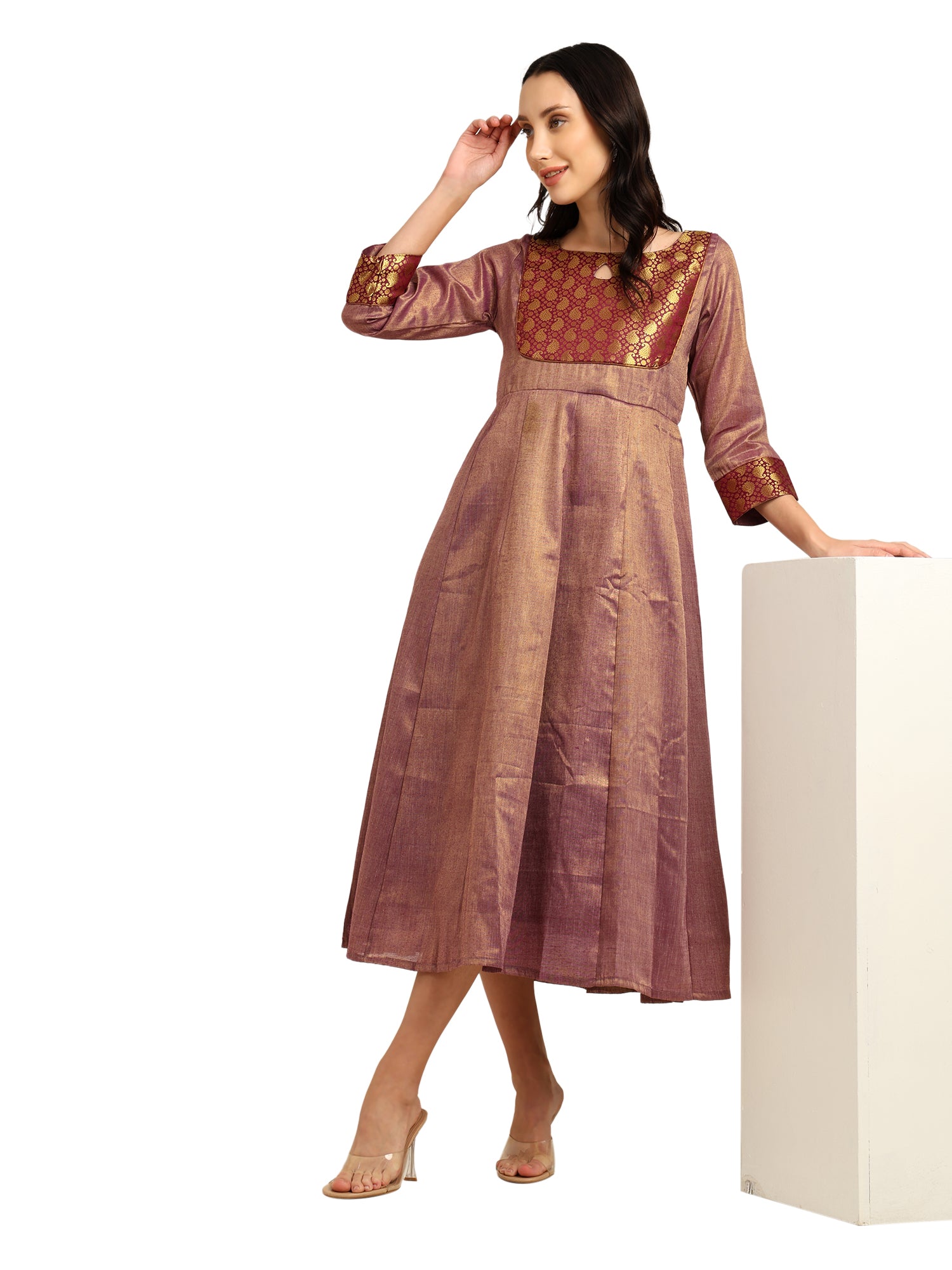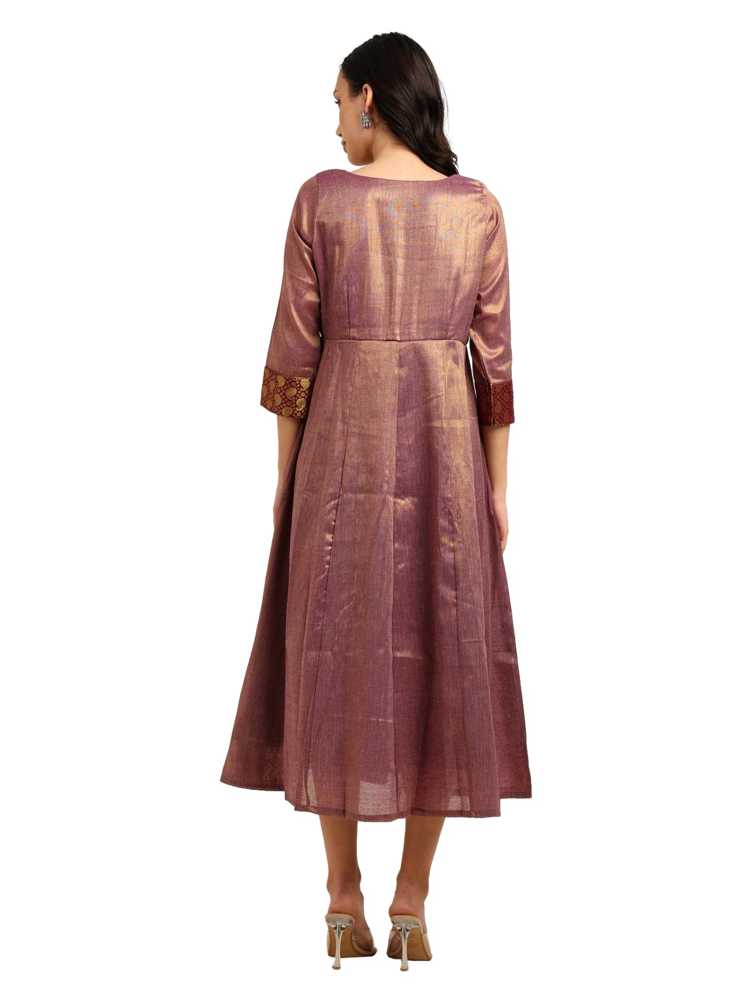 Fashily Women's Jacquard Woven Anarkali Gown | Traditional Indian Dress for Women | Tissue Frock for Women Calf Length