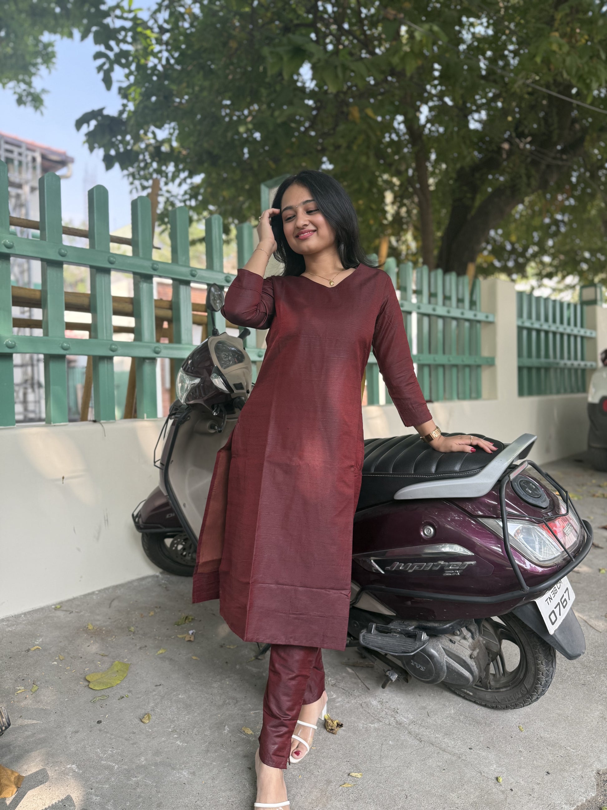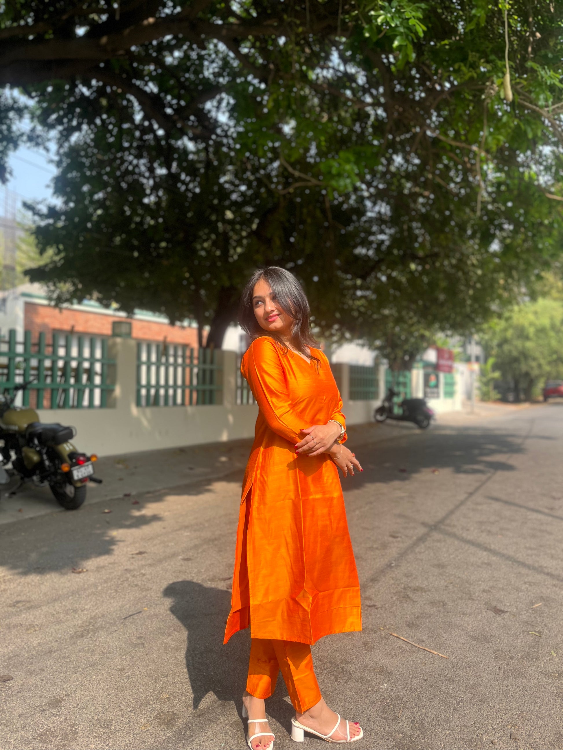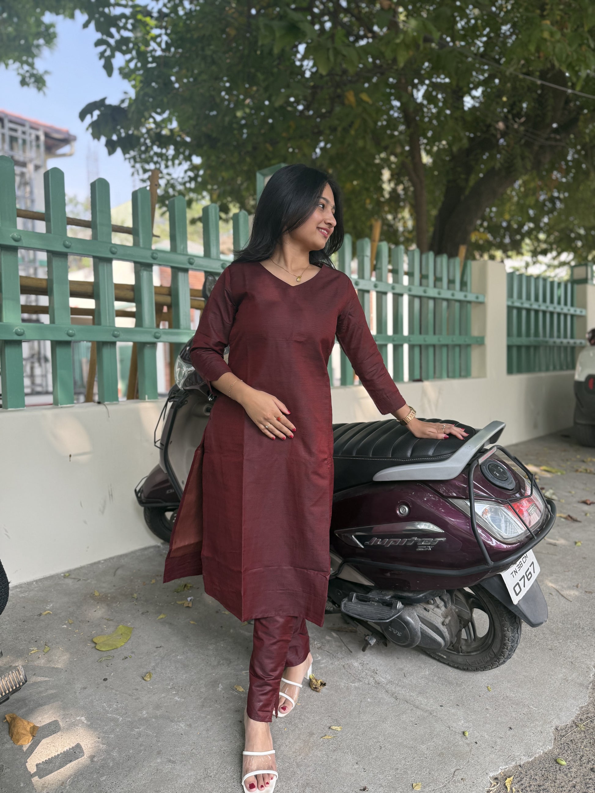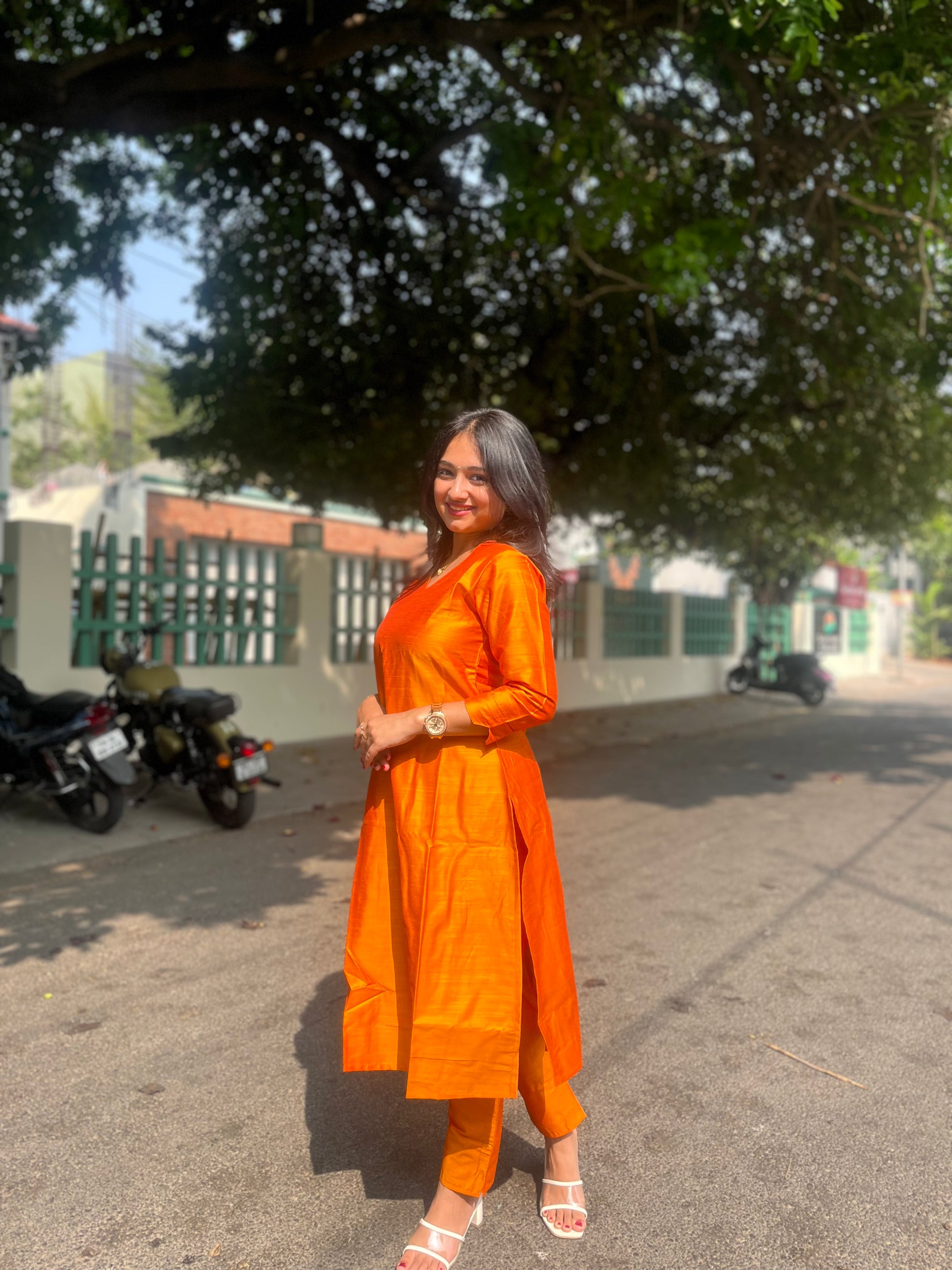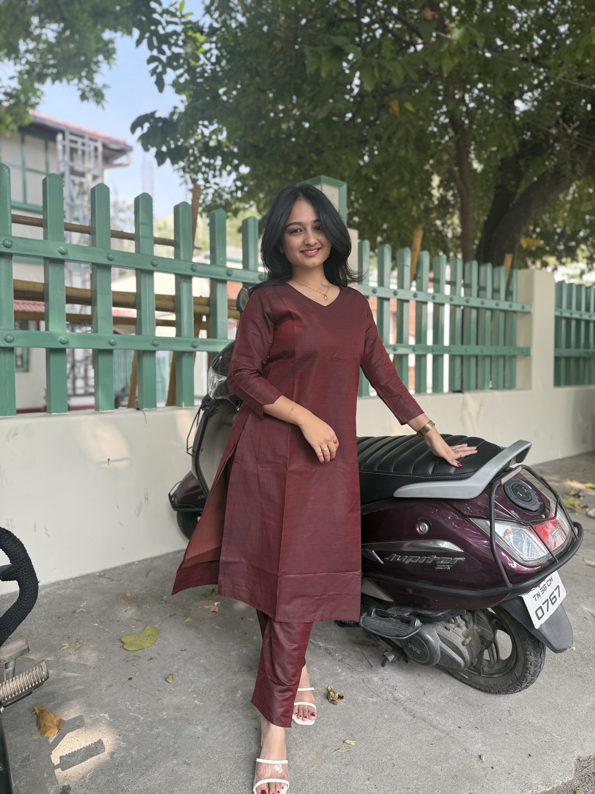 Raw Silk Co-ord set - This chic Raw Silk Co-ord set is perfect for both college and office wear. The set offers a comfortable fit and sophisticated style, making it a versatile choice for any occasion. With its added lining, this set provides maximum comfort and convenience.