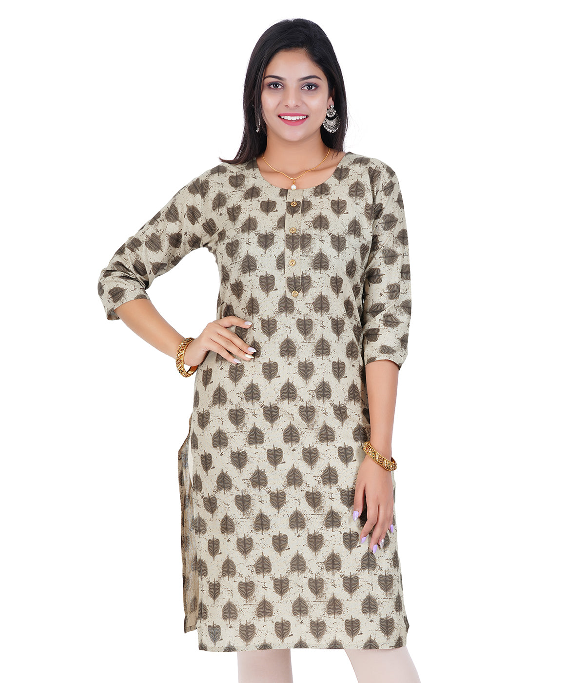 Women's Cotton Printed Kurtis - Brown
