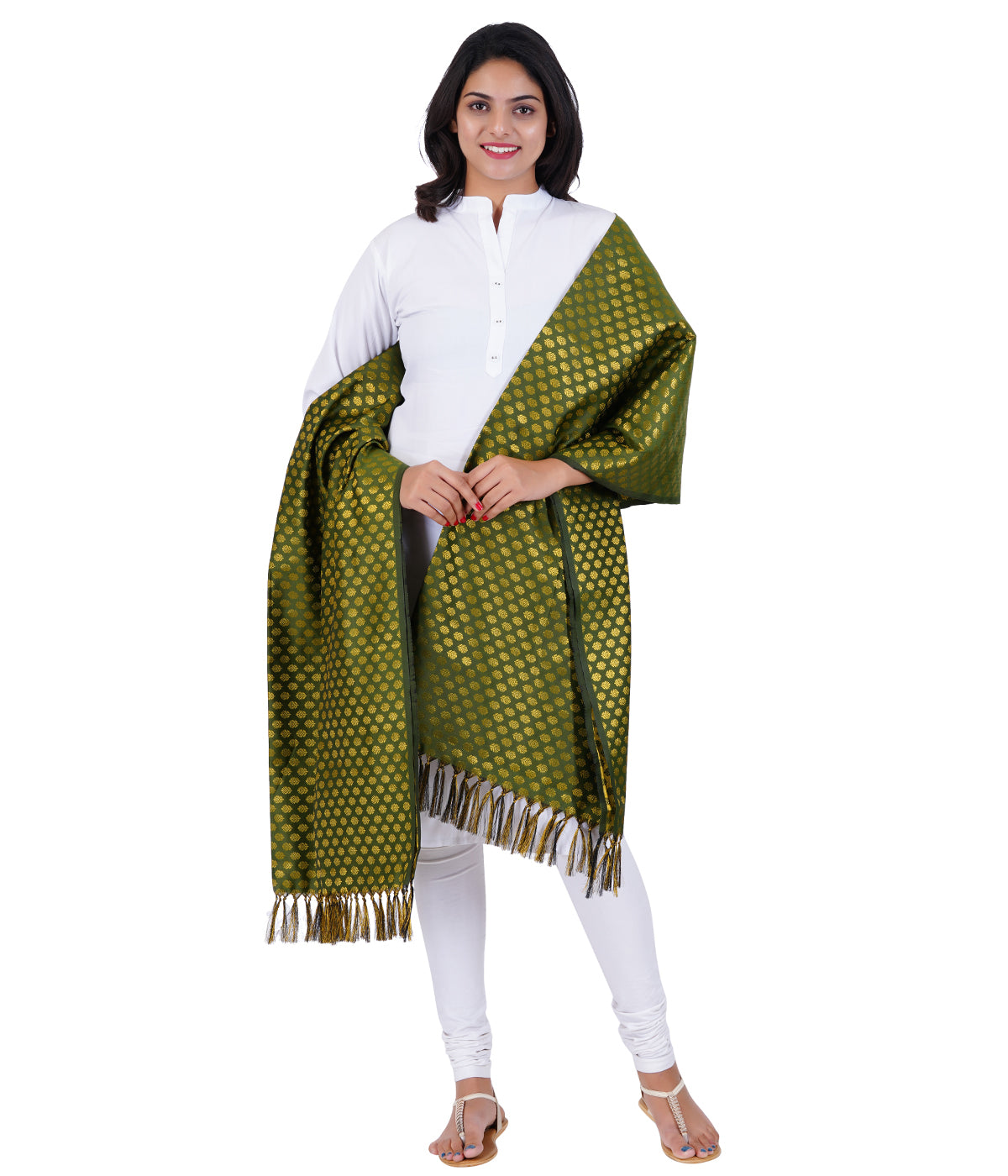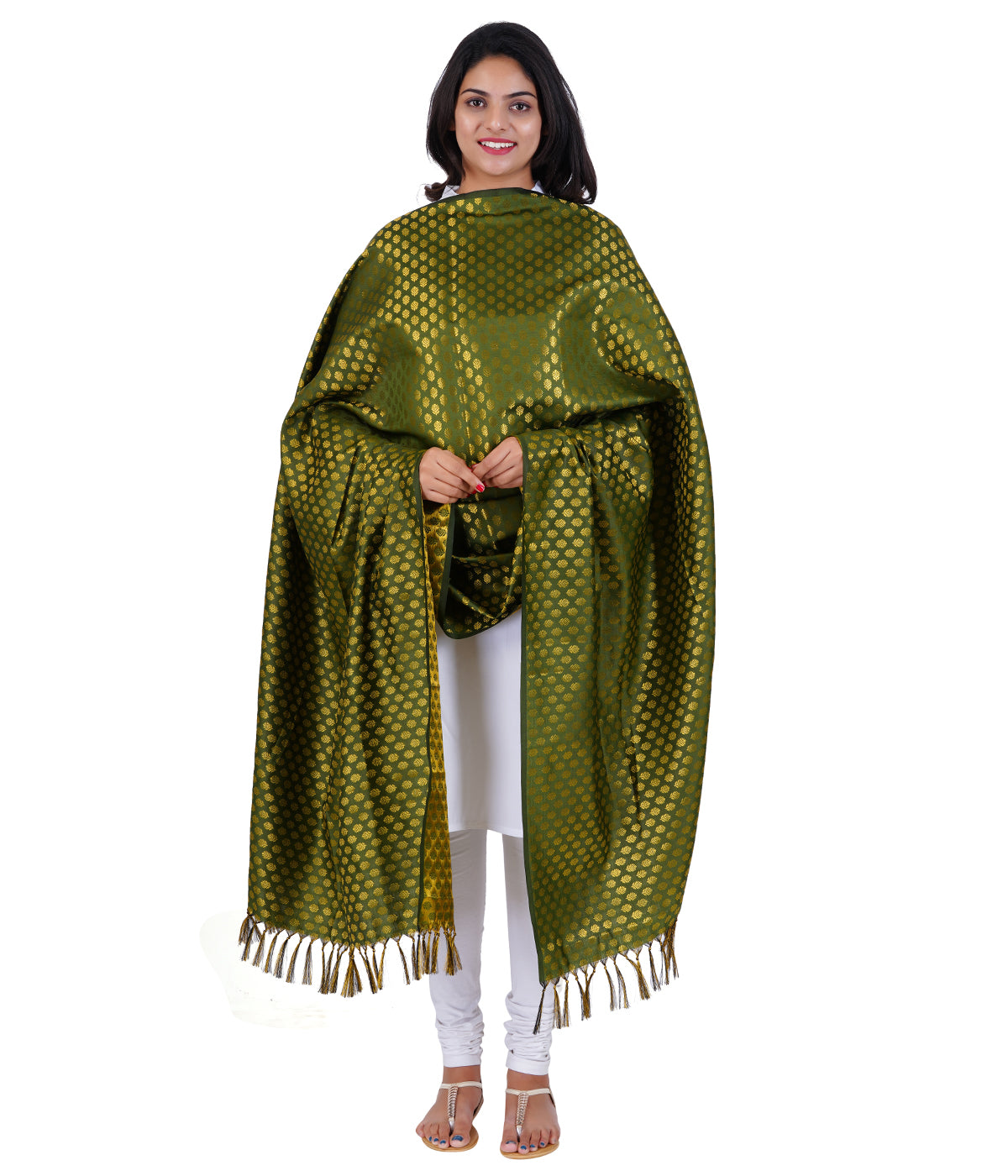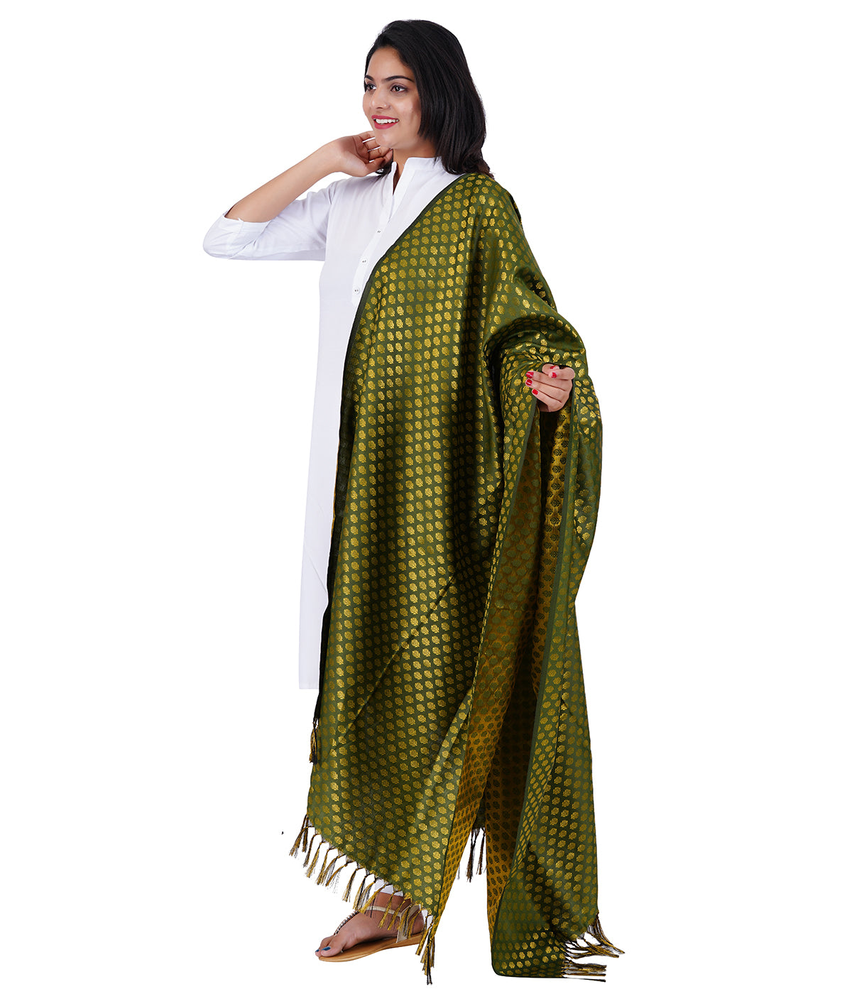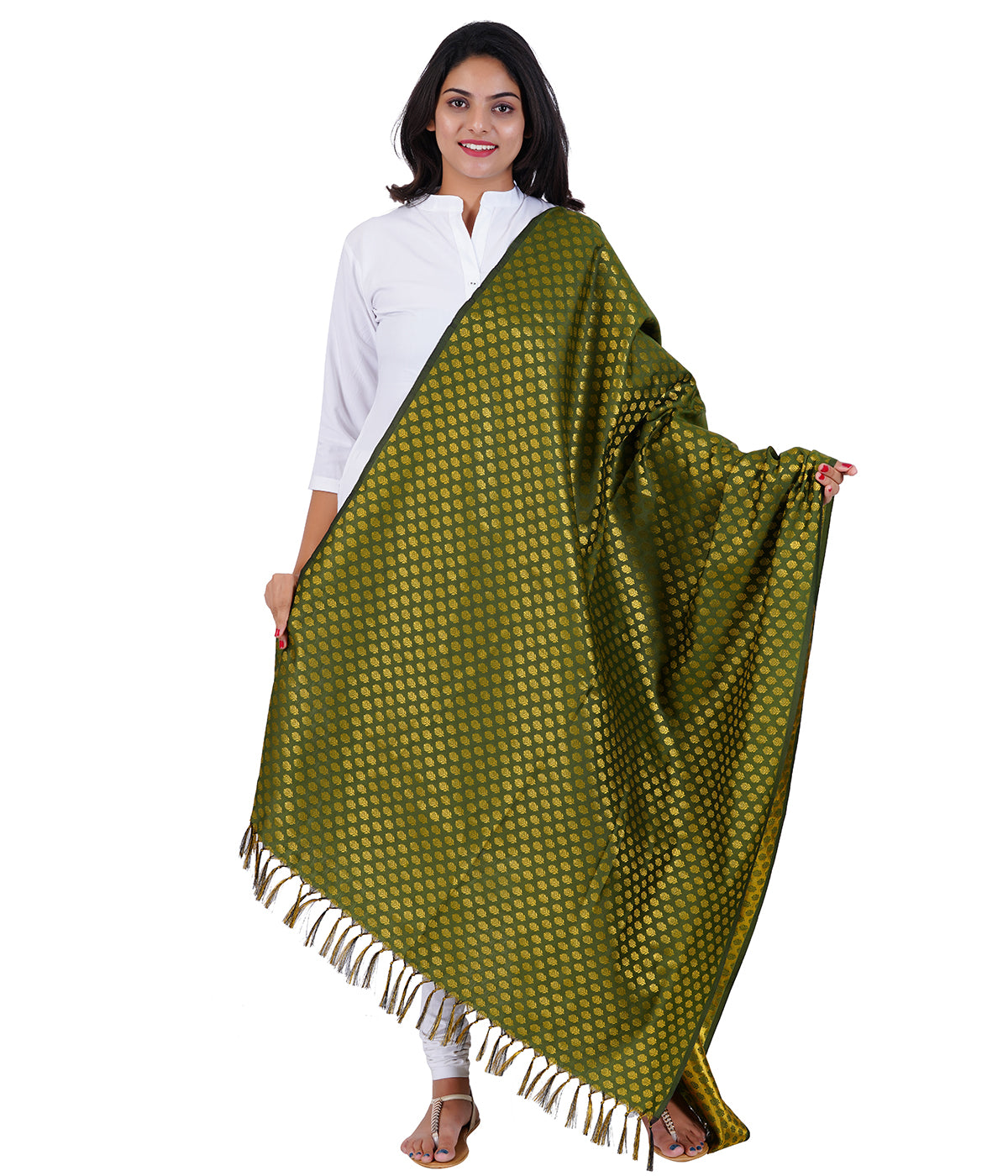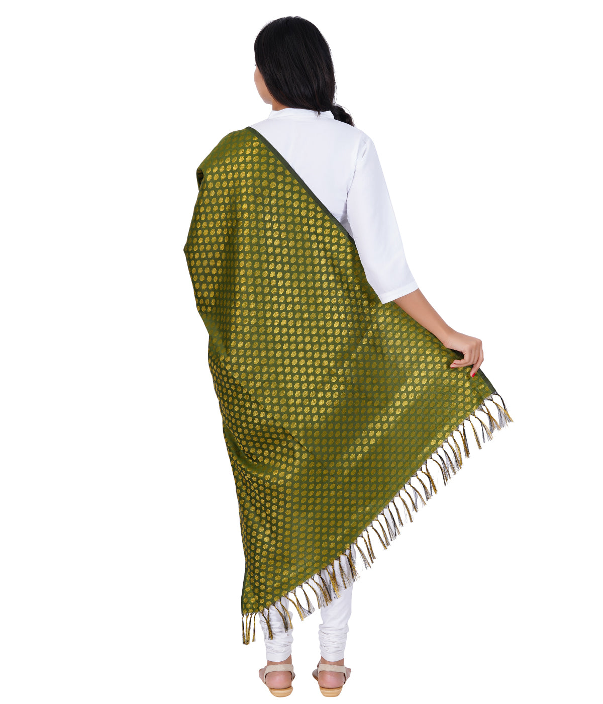 Women's Jacquard Banarasi Dupatta - Olive Green Small Flower