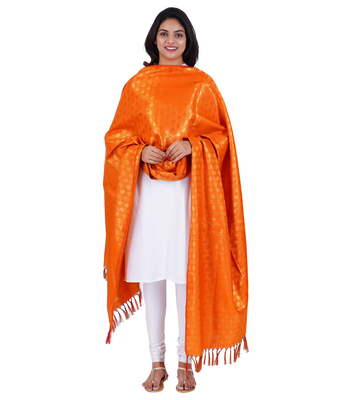 Women's Jacquard Banarasi Dupatta - Orange Big Mango