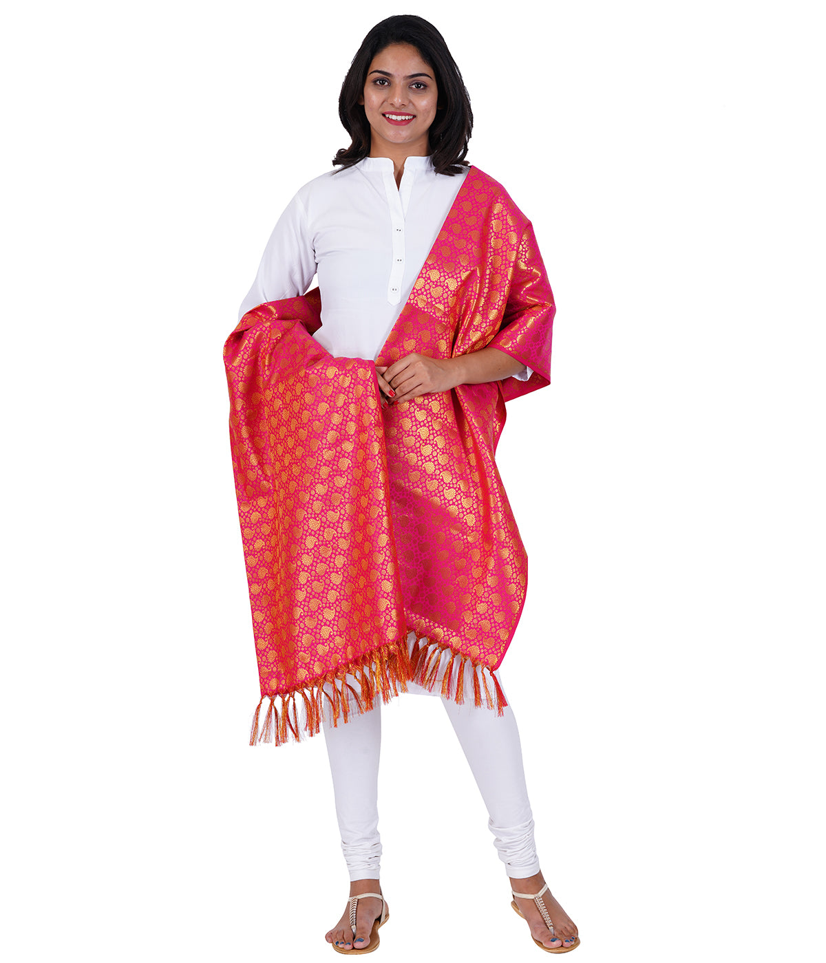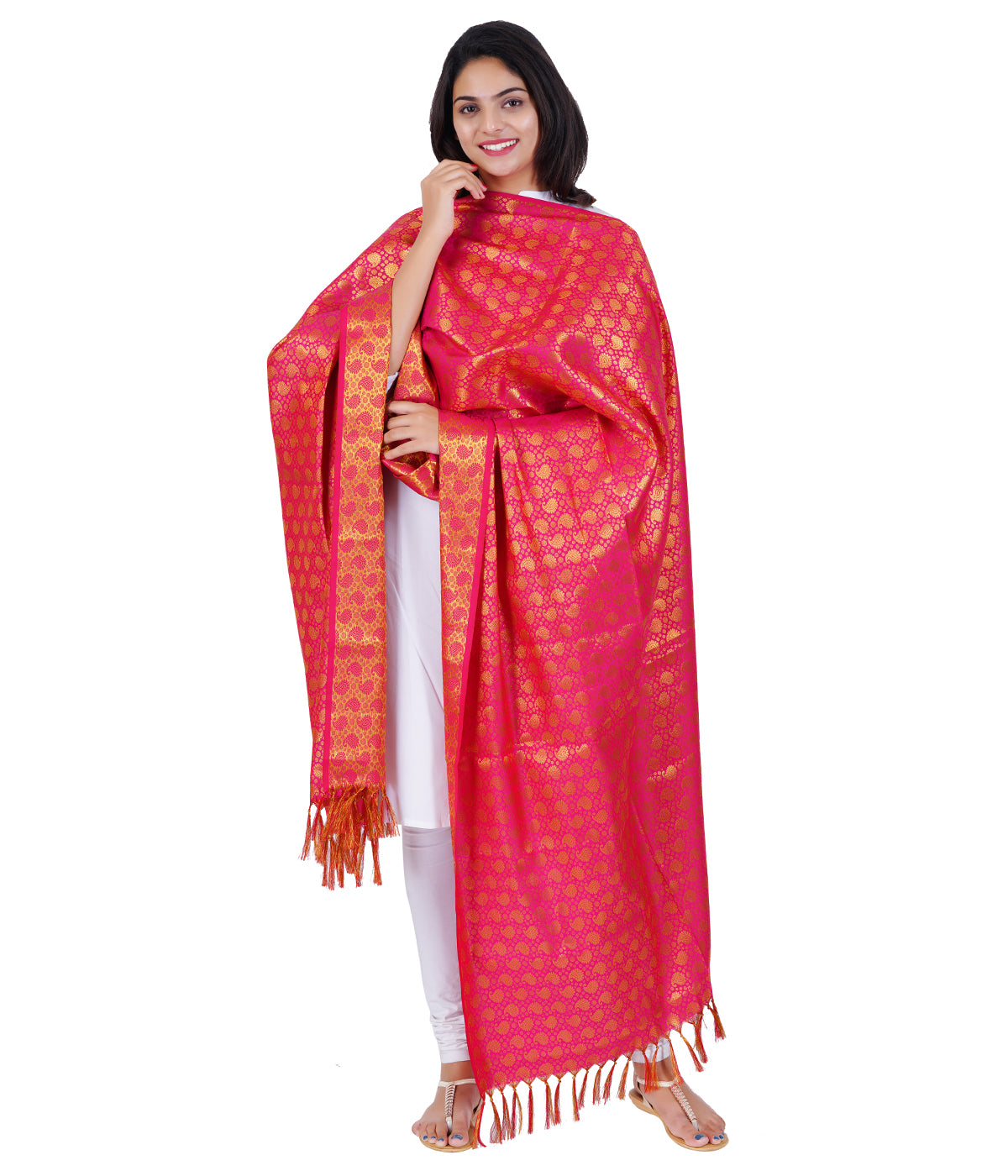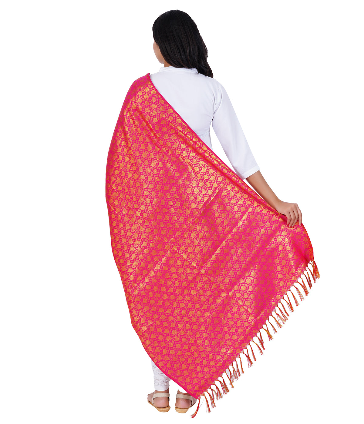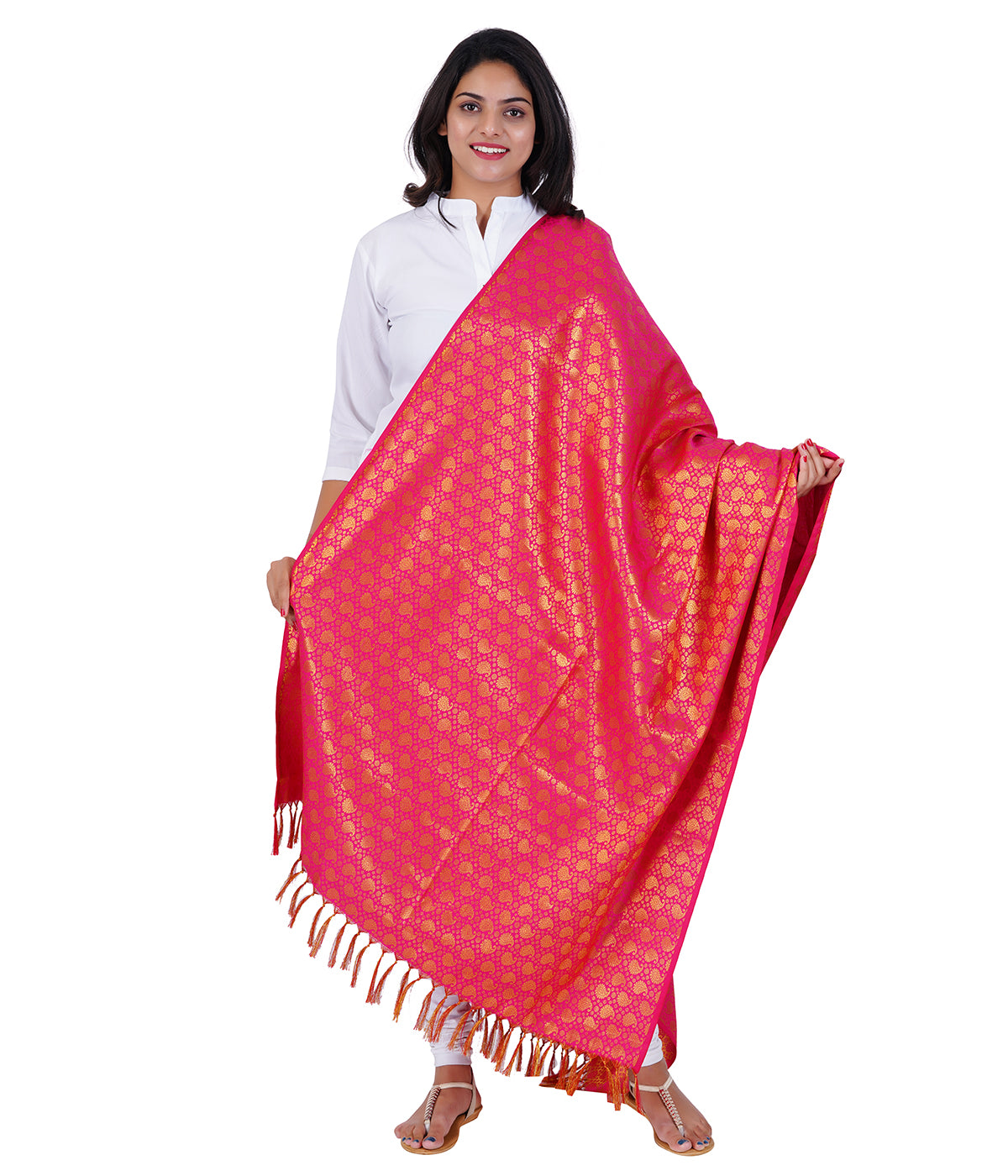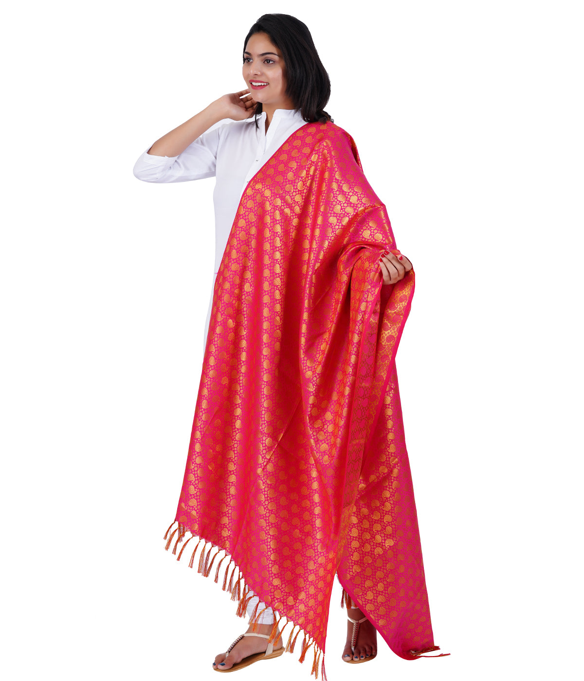 Women's Jacquard Banarasi Dupatta - Rani Pink Big Mango