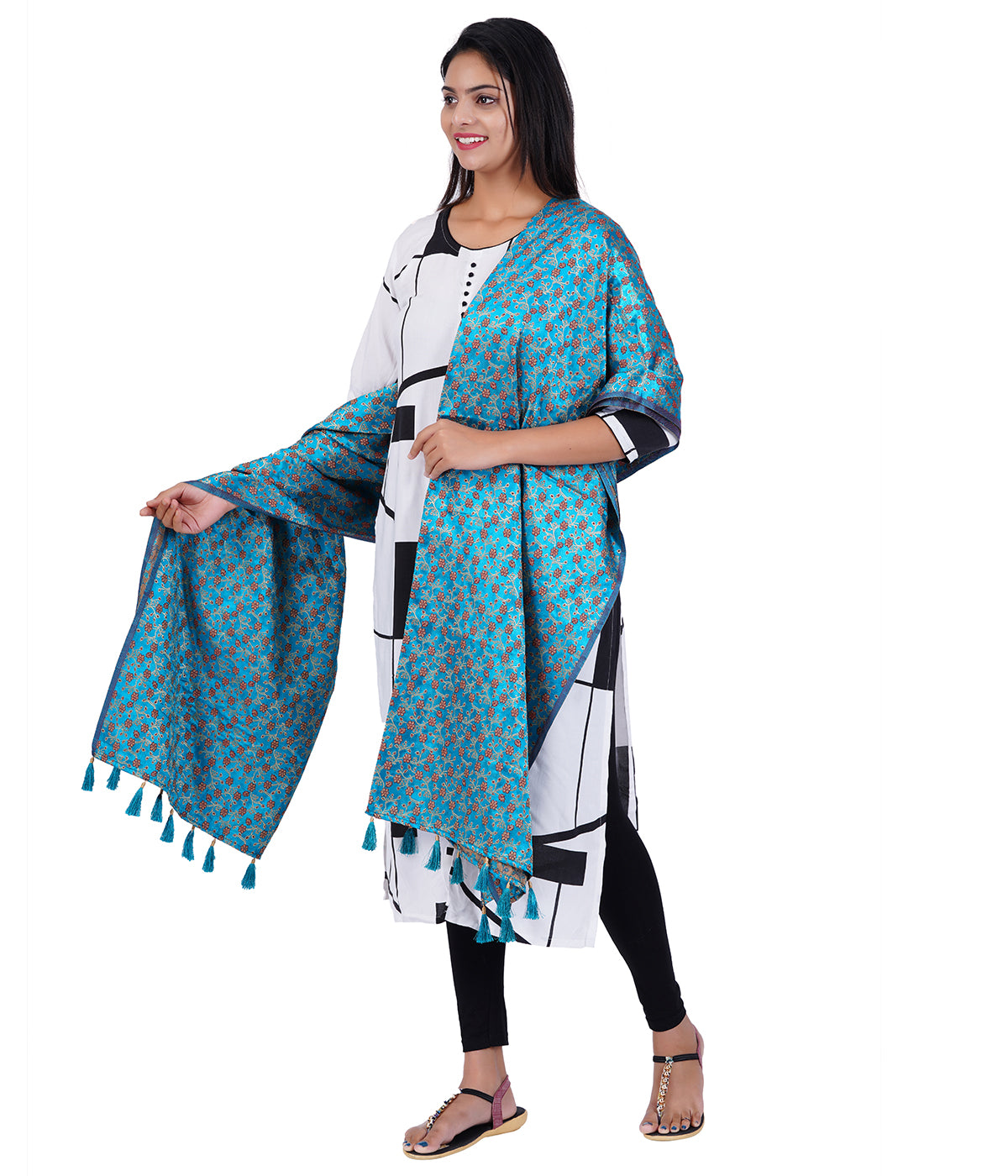 Women's Jacquard Floral Design Dupatta with Tassel Work - Anandha Blue