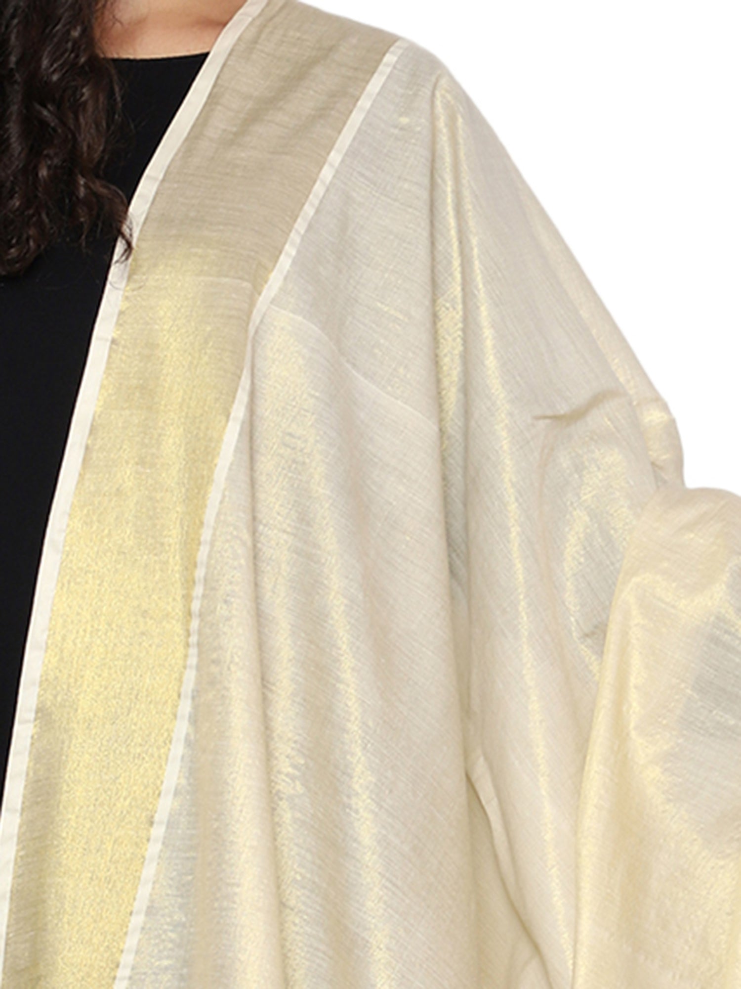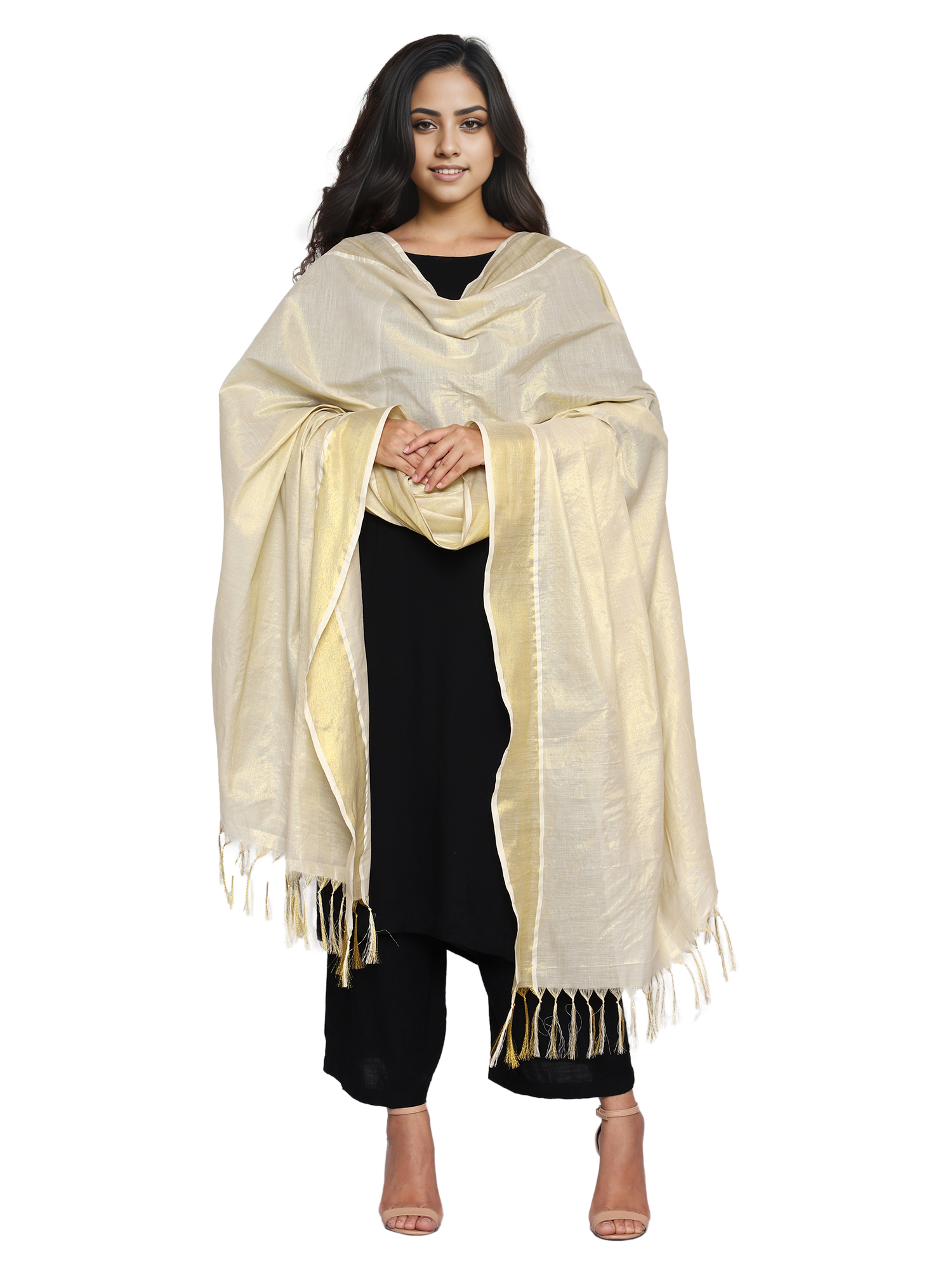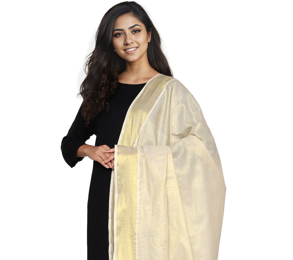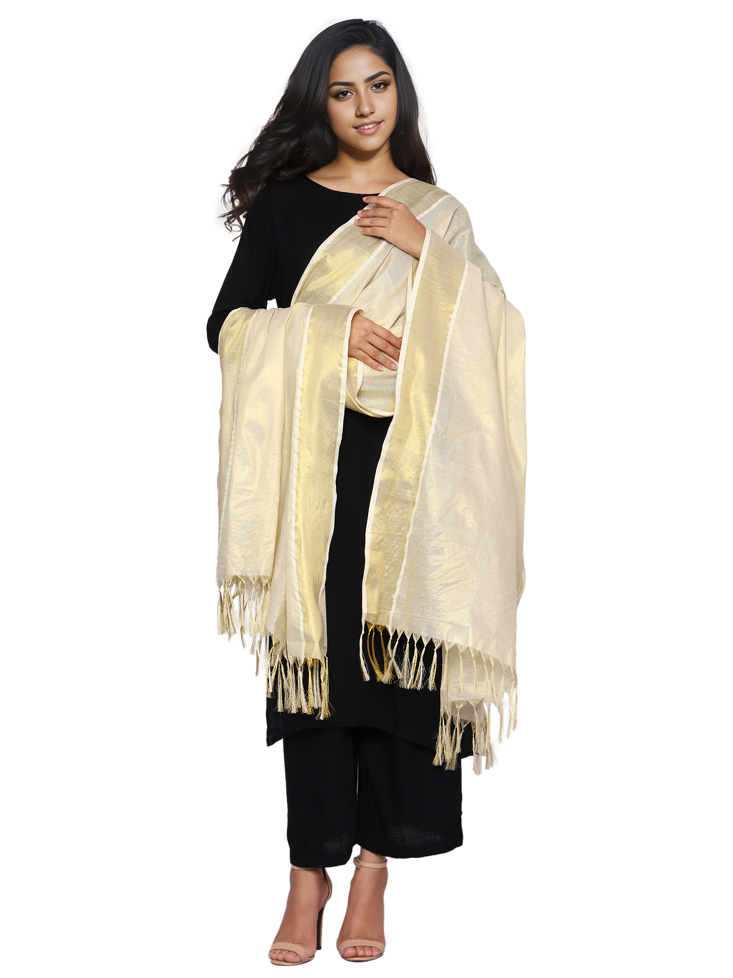 Women's Kerala Kasavu Tissue Dupatta - Gold