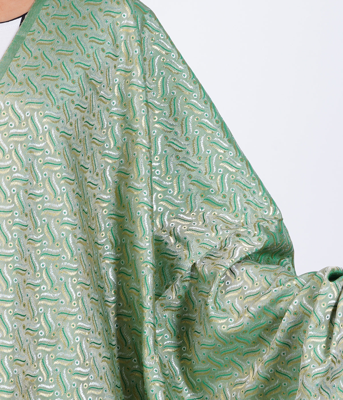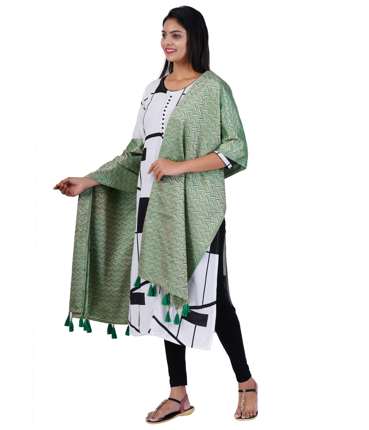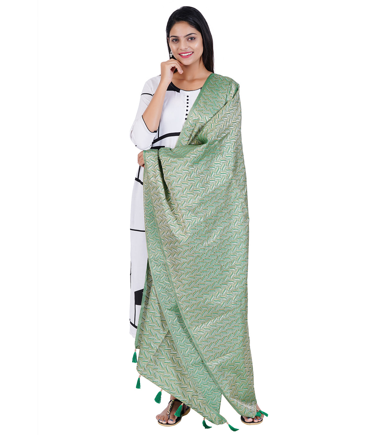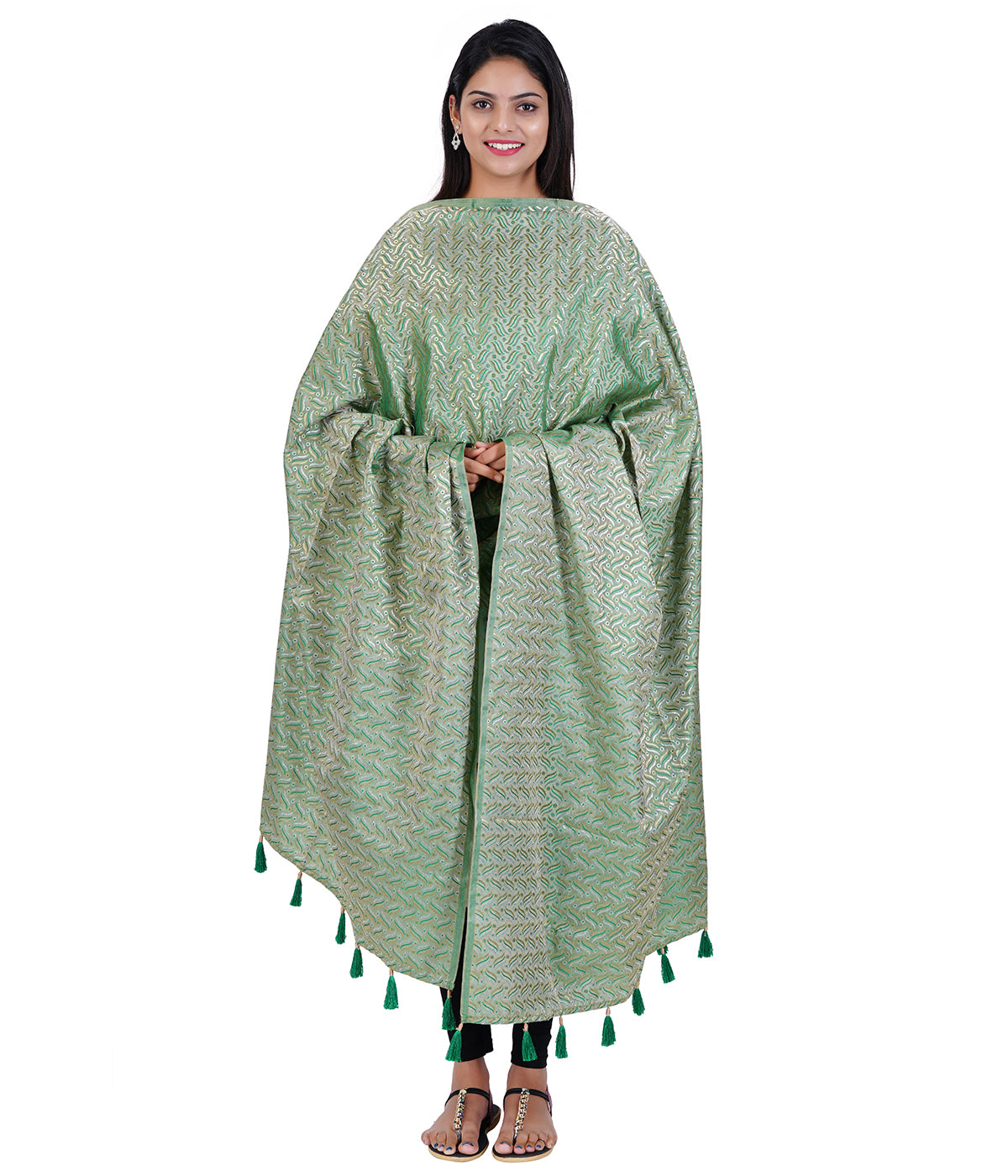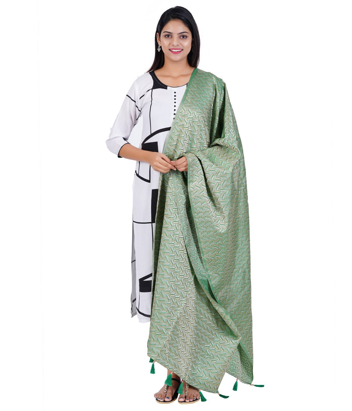 Women's Satin Jacquard Woven Dupatta - Triple Line Green