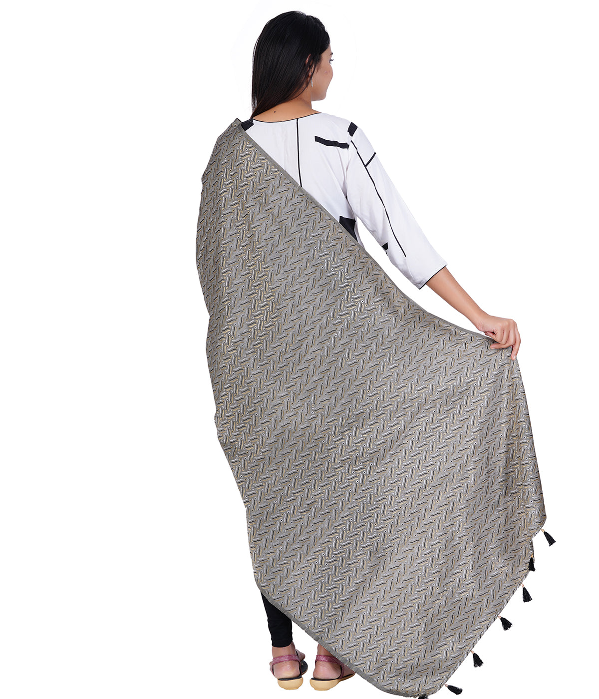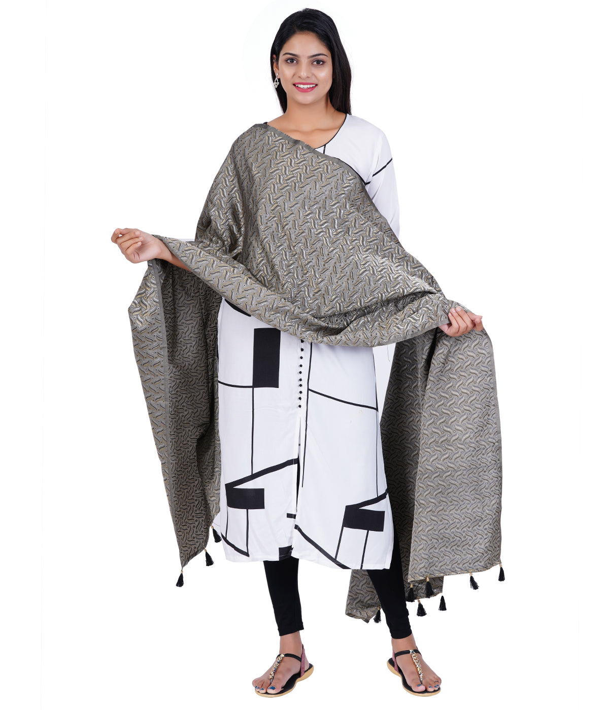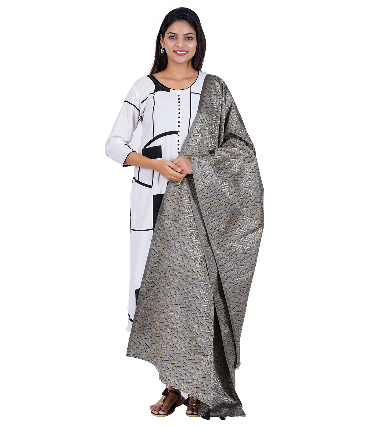 Women's Satin Jacquard Woven Dupatta - Triple Line Grey