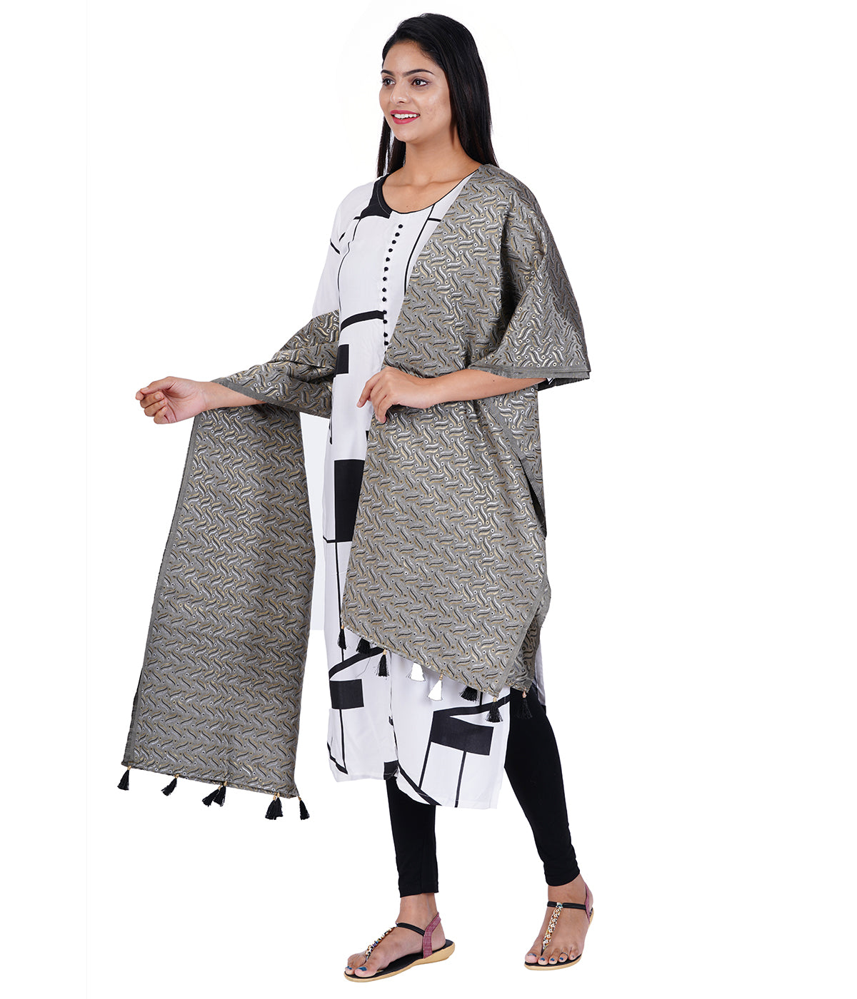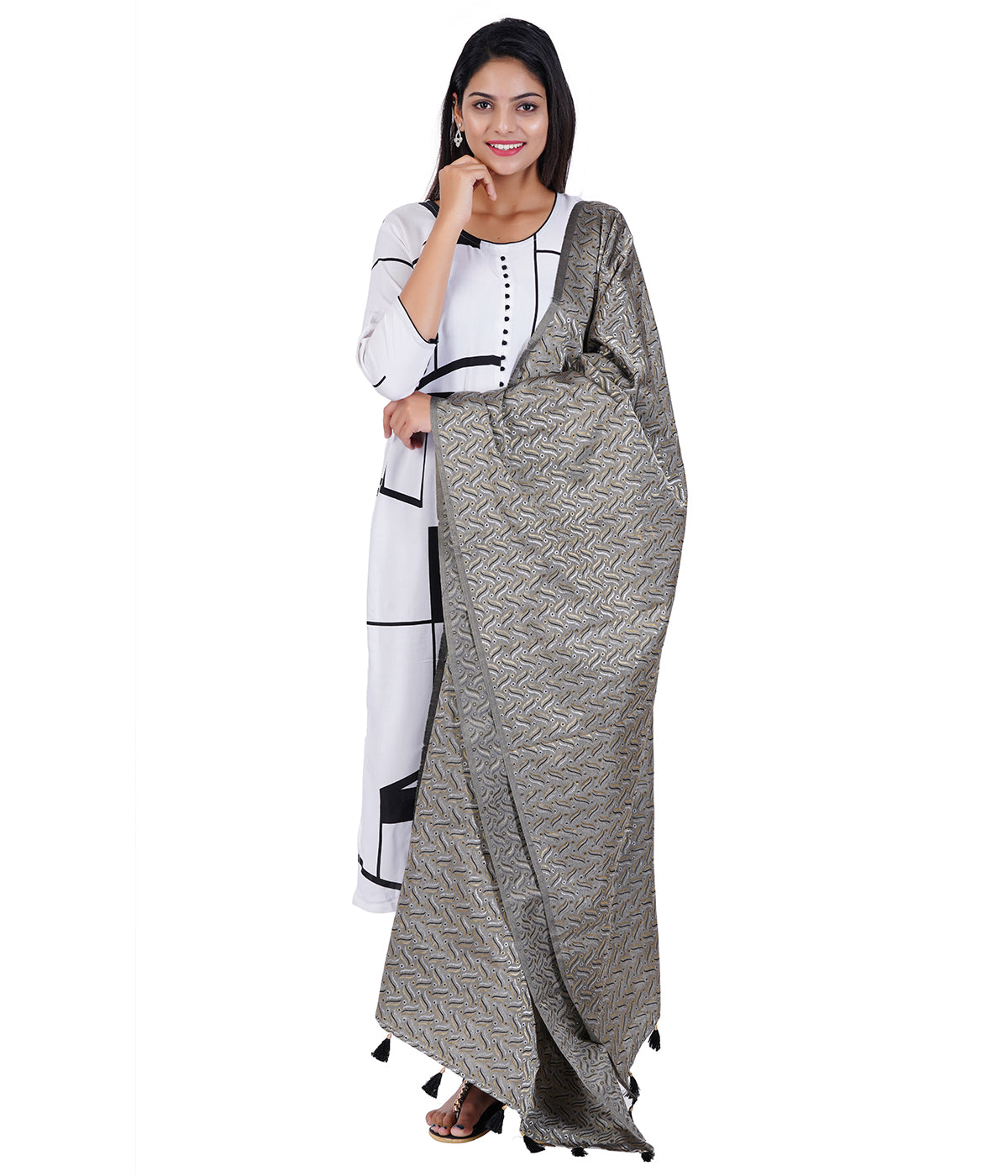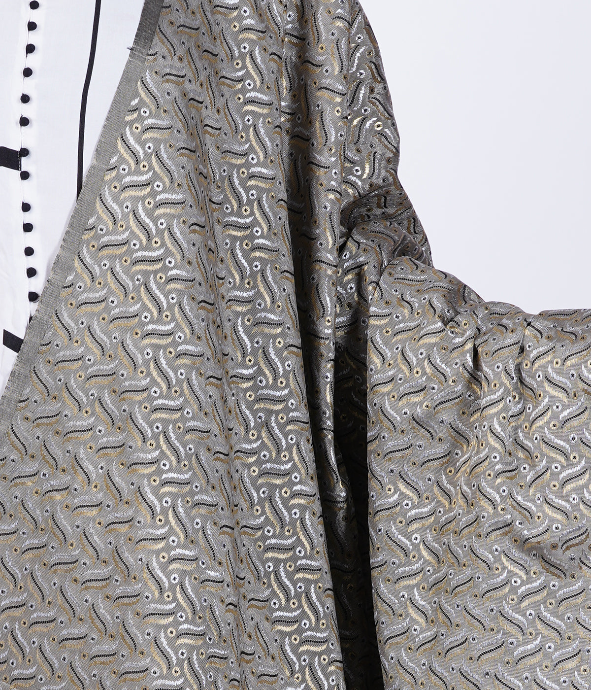 Women's Satin Jacquard Woven Dupatta - Triple Line Grey
