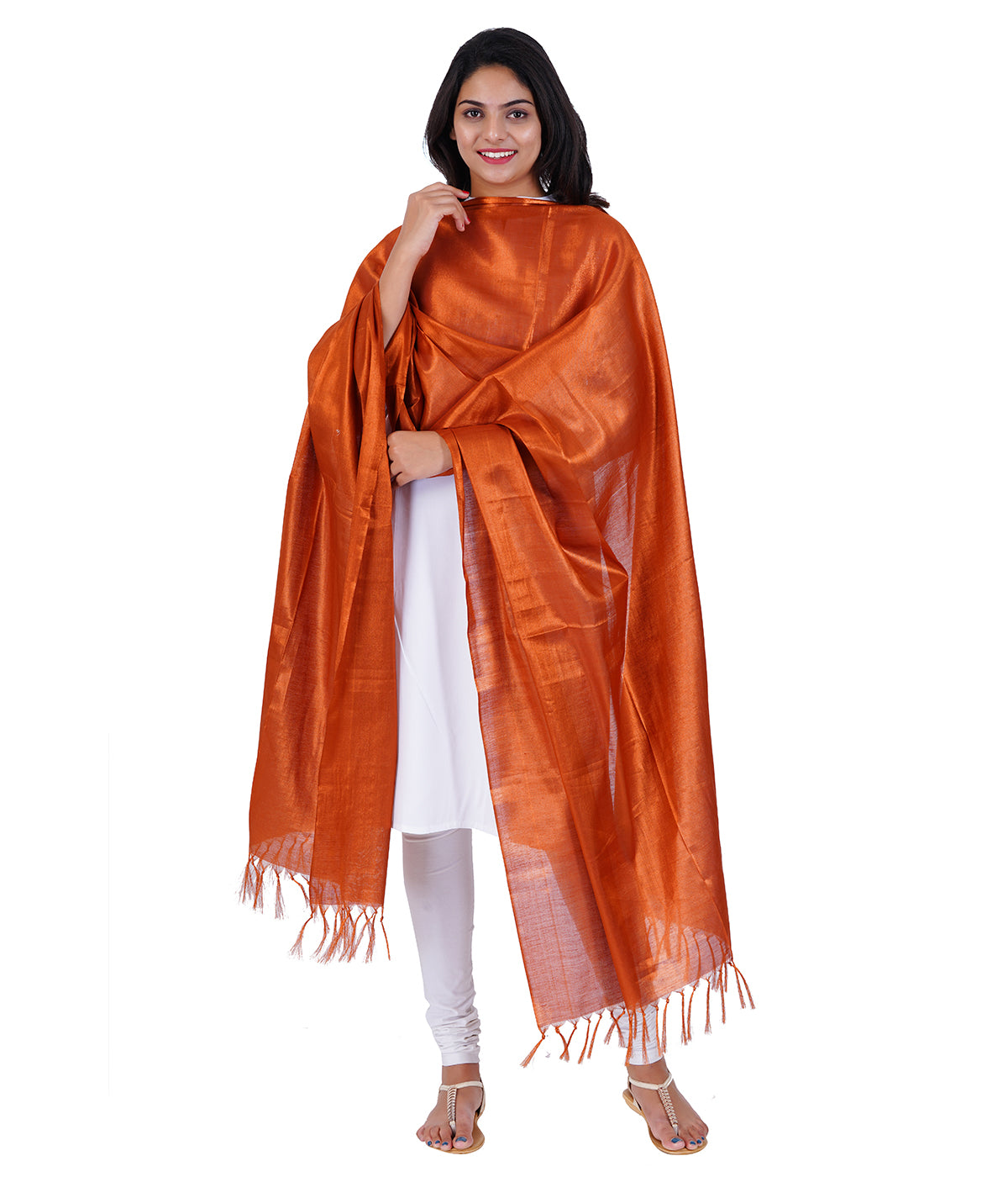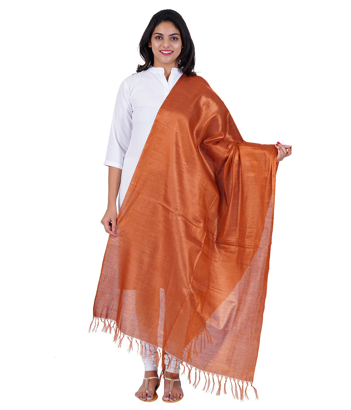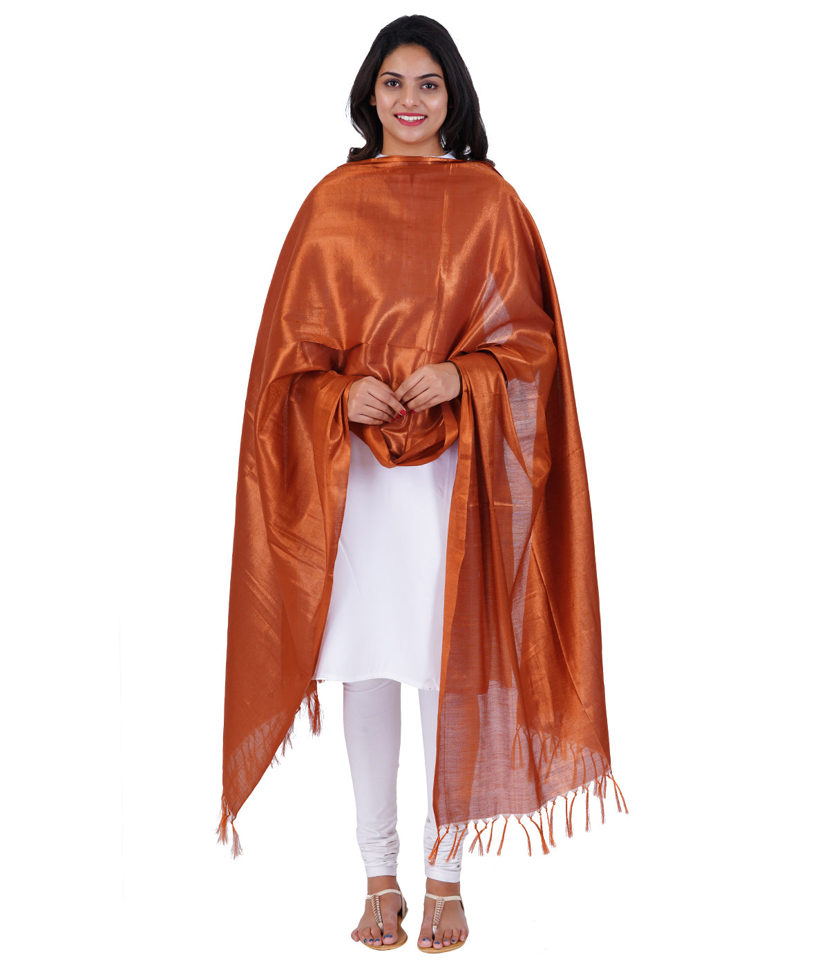 Women's Soild Silk Plain Dupatta - Copper/Copper