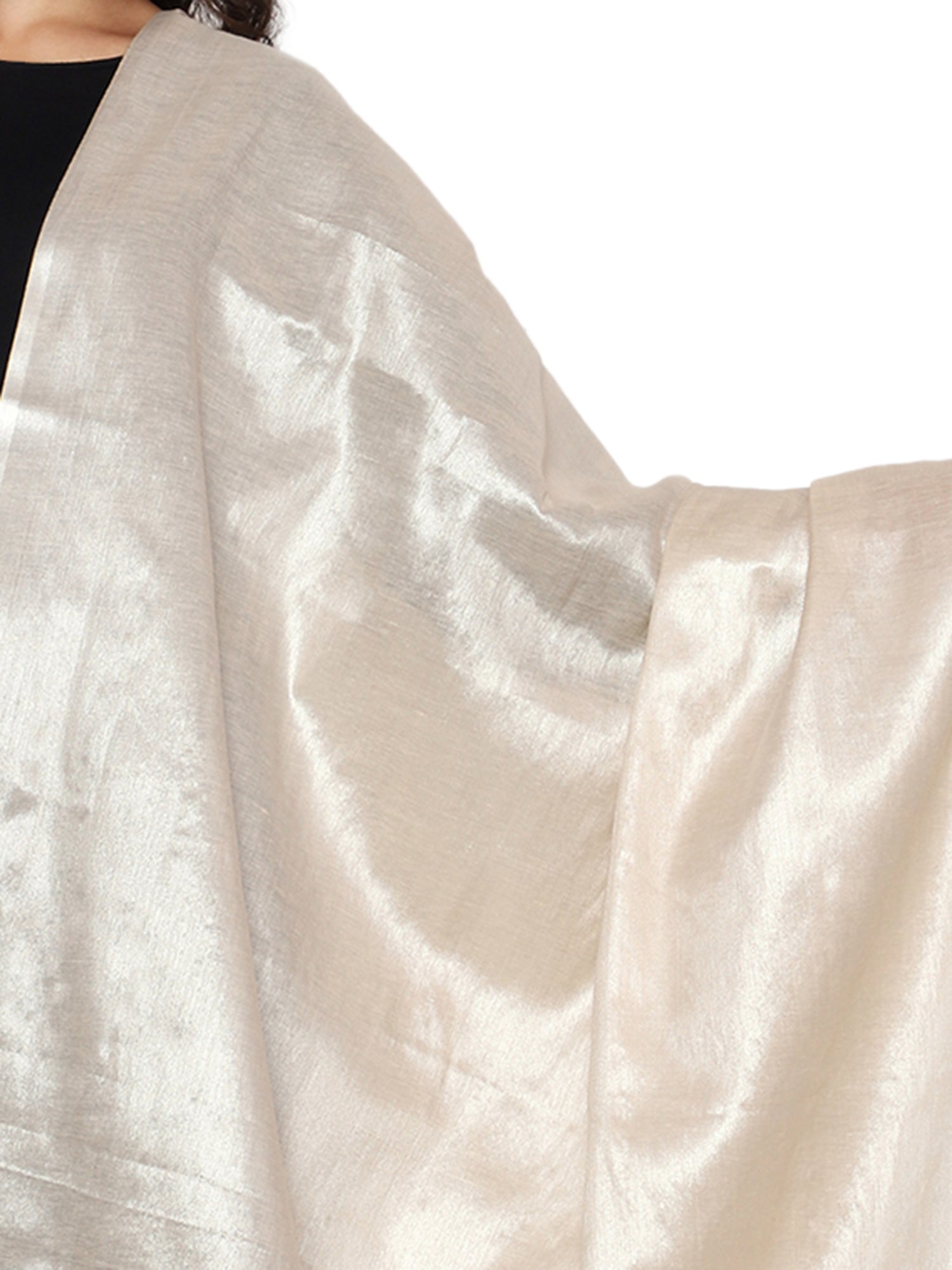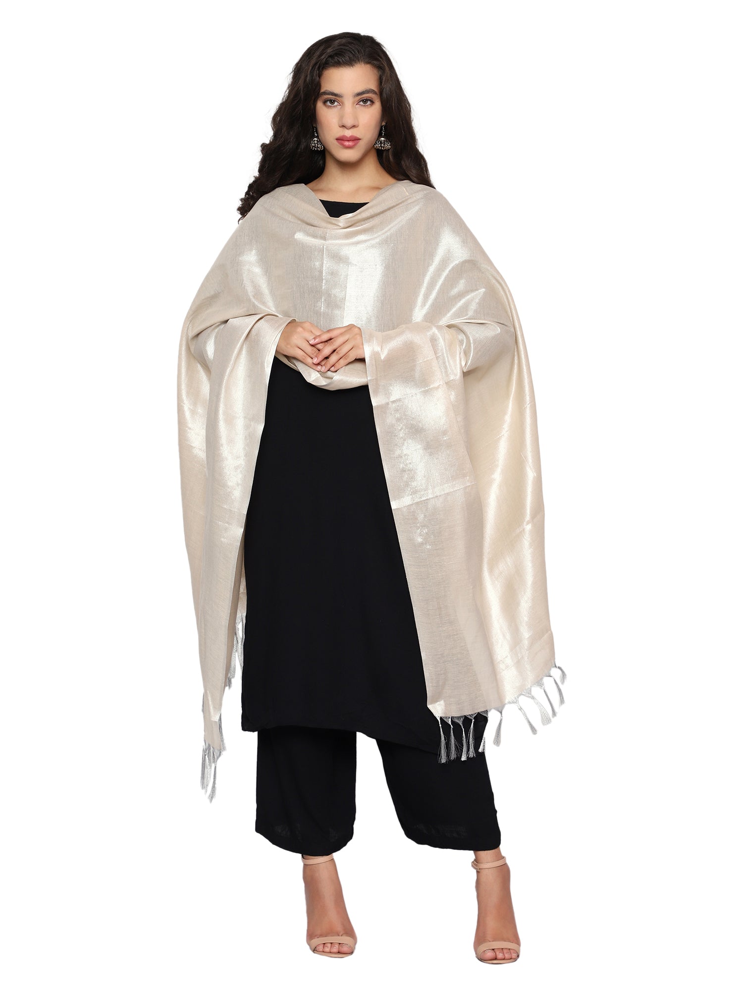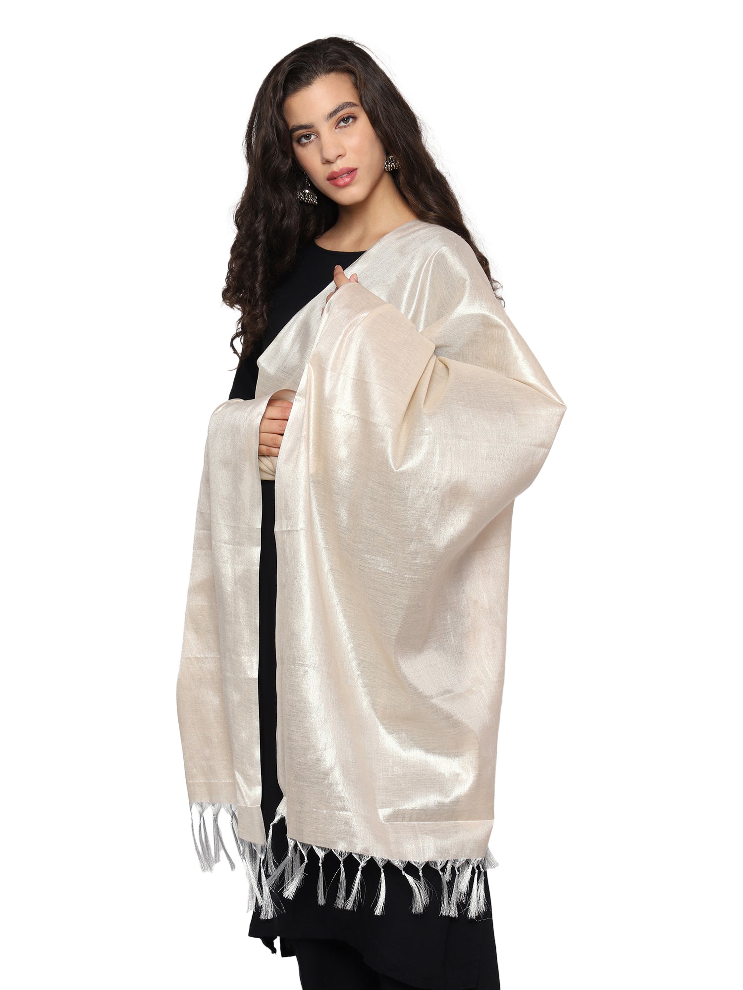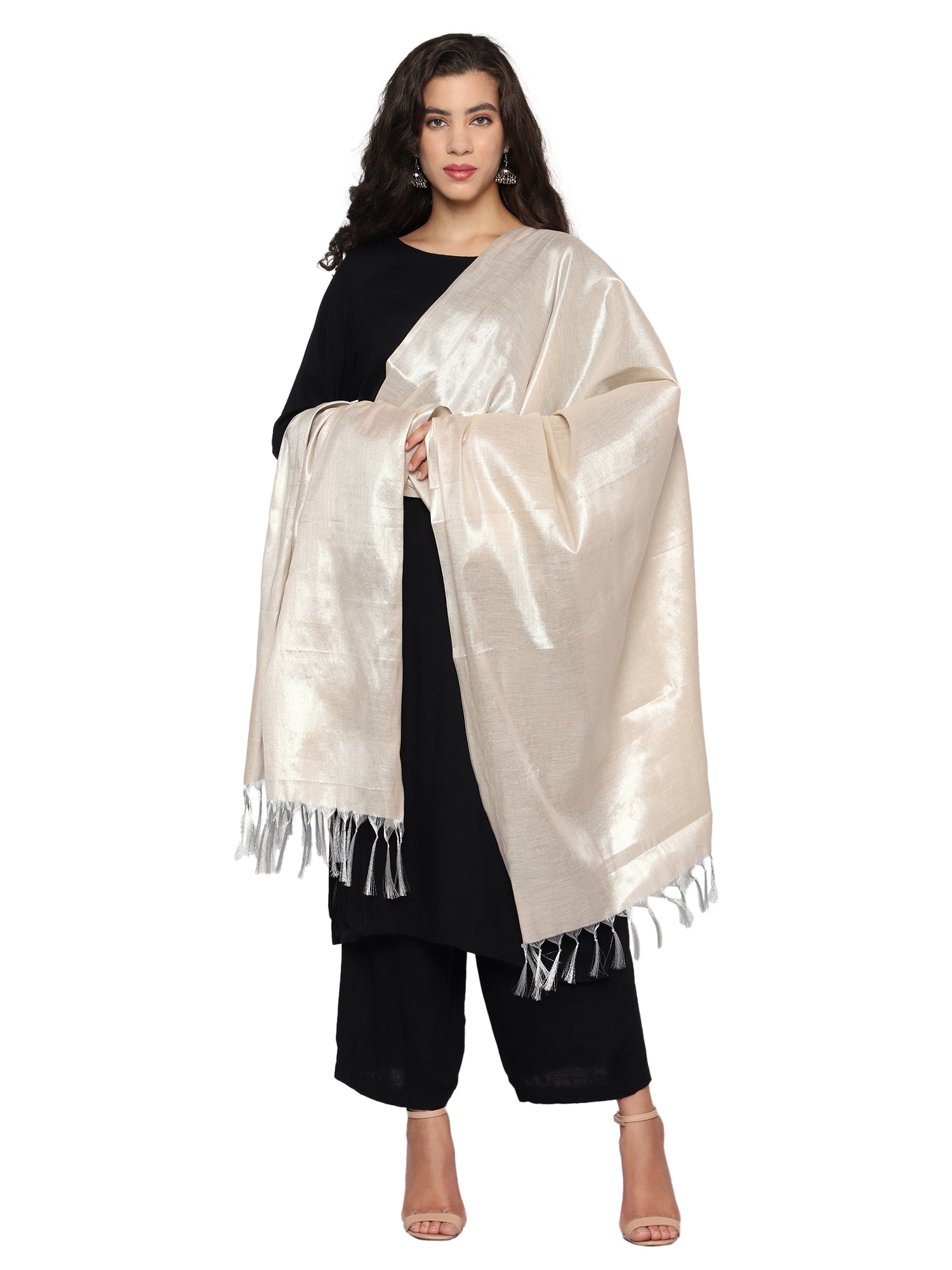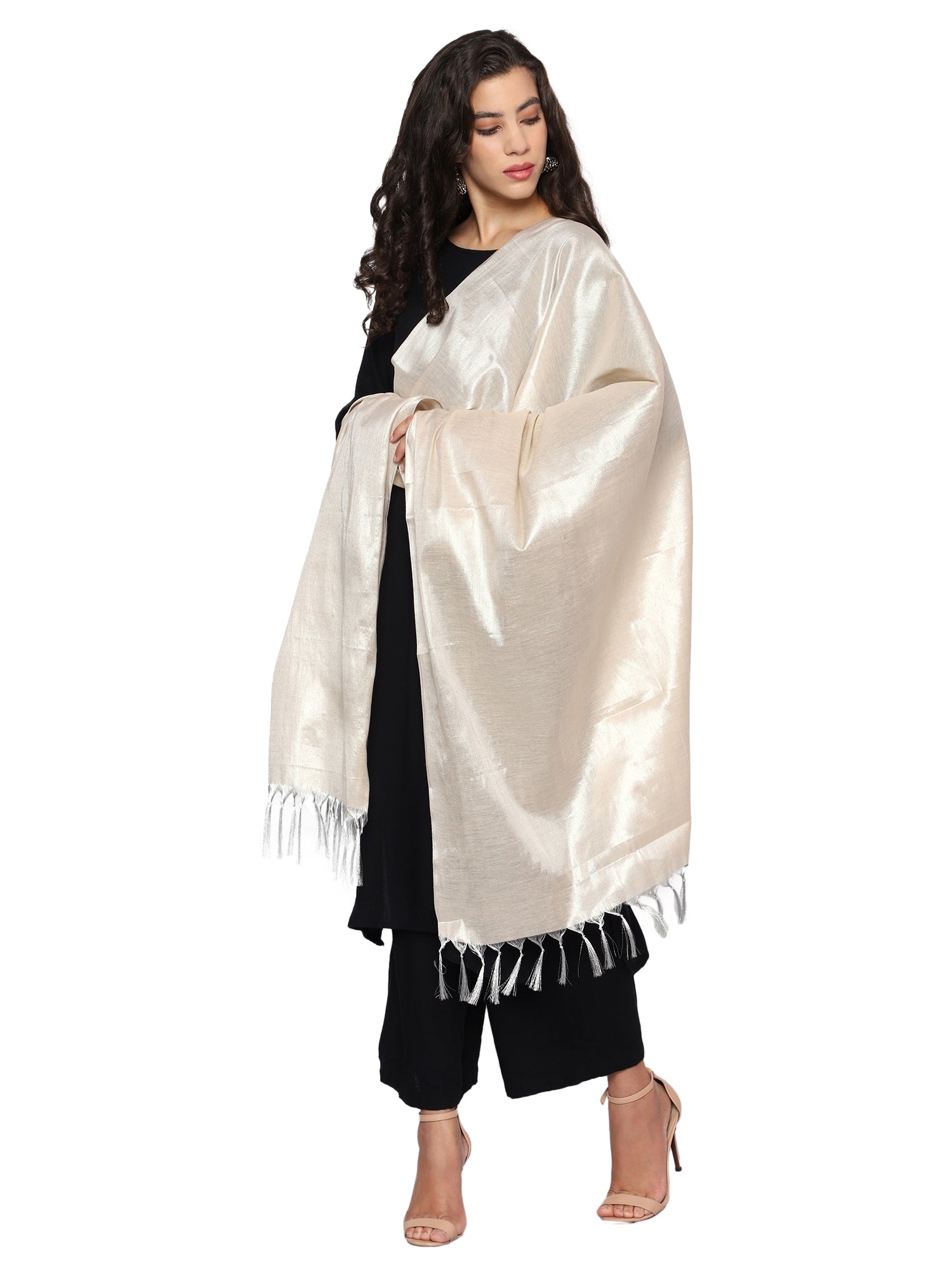 Women's Soild Silk Plain Dupatta - Silver/Cream